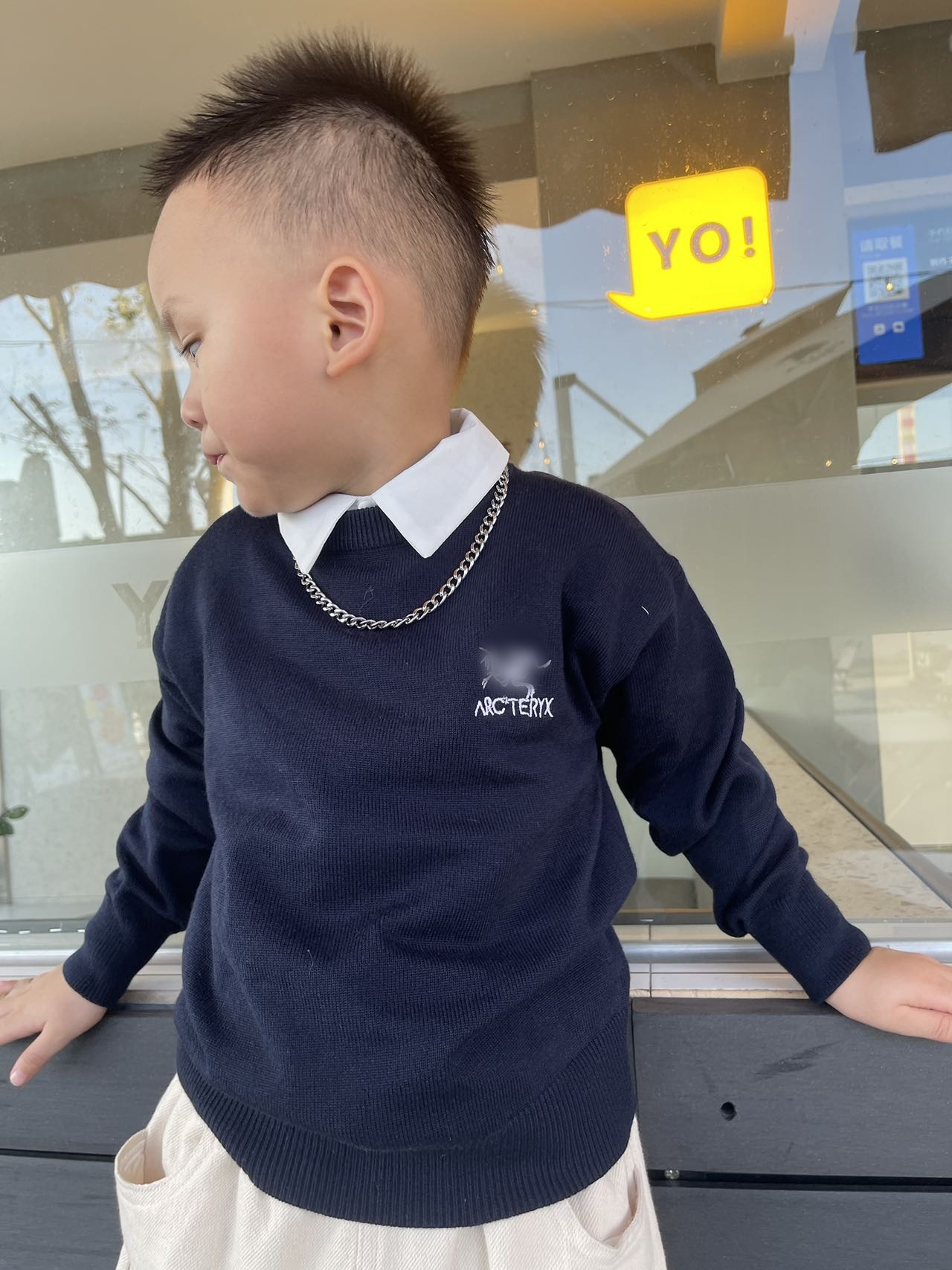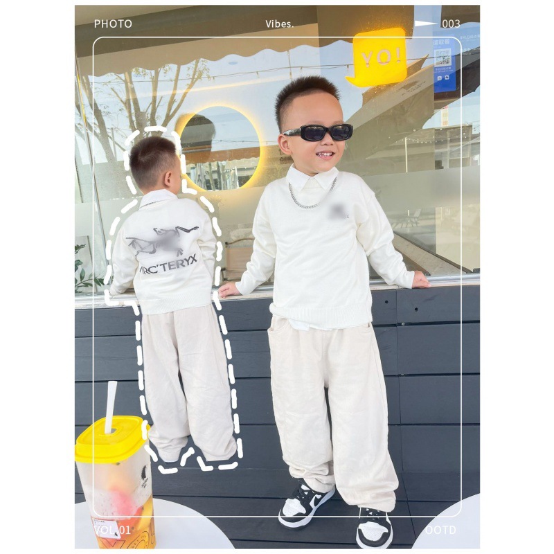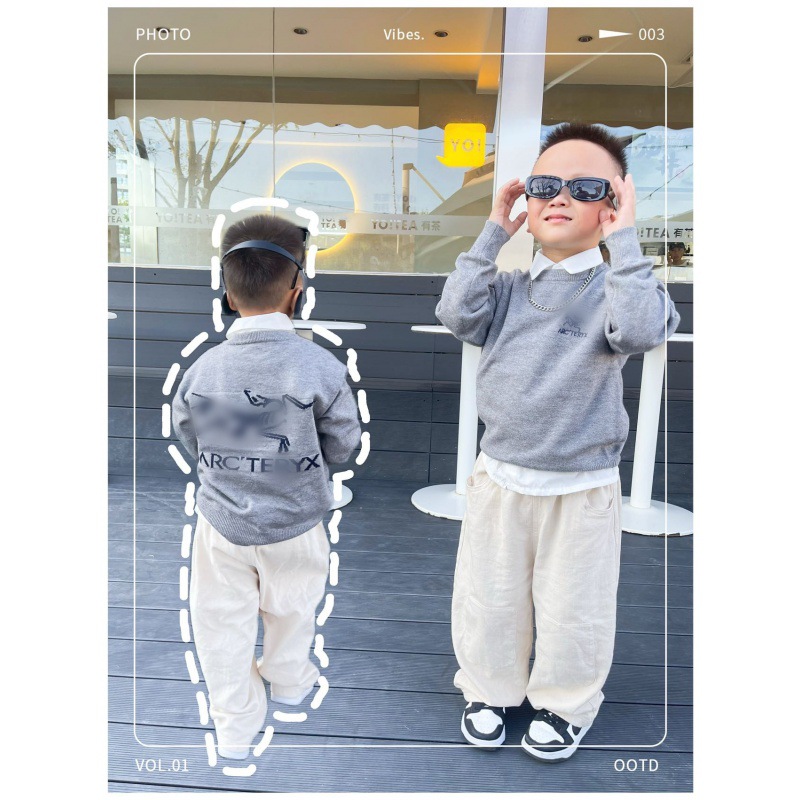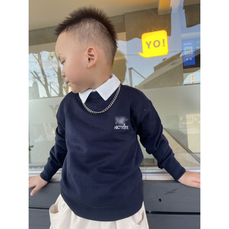 2023 가을과 겨울 한국 어린이 크루넥 스웨터 소년과 소녀를위한 자수 재킷 부모-자식 스트라이프 크로스 보더 스페셜 23060