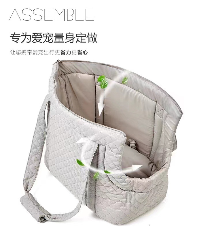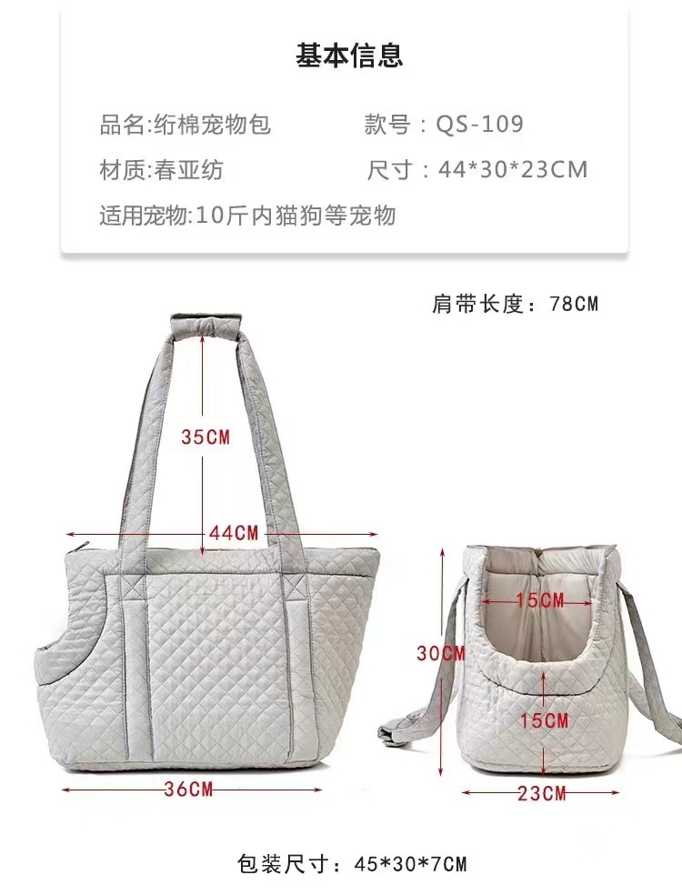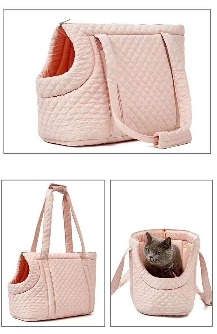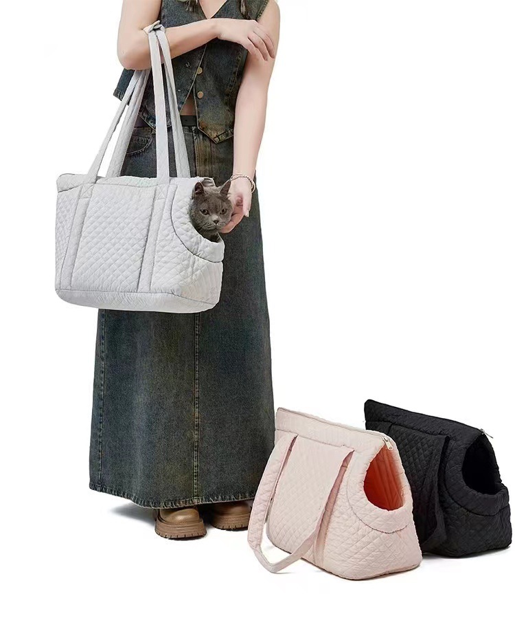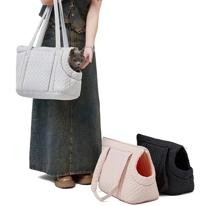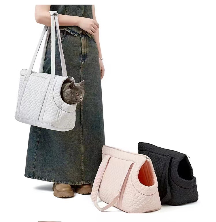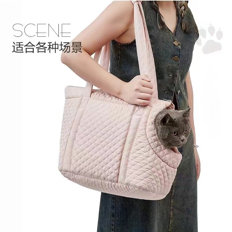 새로운 한국식 퀼팅 펫 핸드백 가을과 겨울 초경량 퀼팅 코튼 펫 휴대 가방 원숄더 고양이 외출백