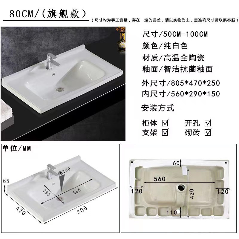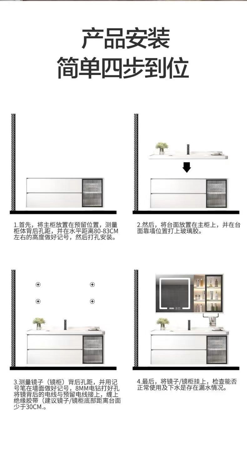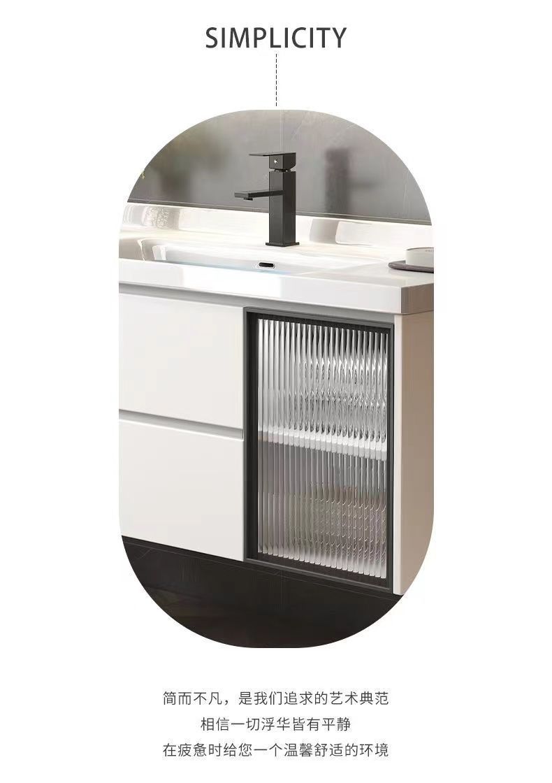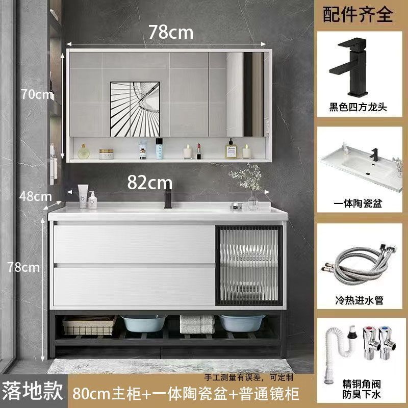 • 03 진주 흰색 바닥 캐비닛 일반 정사이즈 거울 캐비닛-암판 80cm 수도꼭지 (10 년 보증)