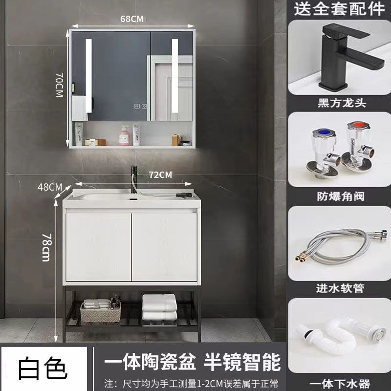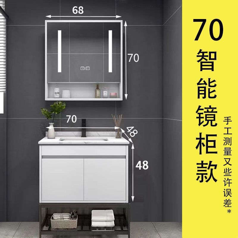 • 03 진주 흰색 바닥 캐비닛 지능형 정사이즈 거울 캐비닛-록 플레이트 70cm 수도꼭지 (10 년 보증)