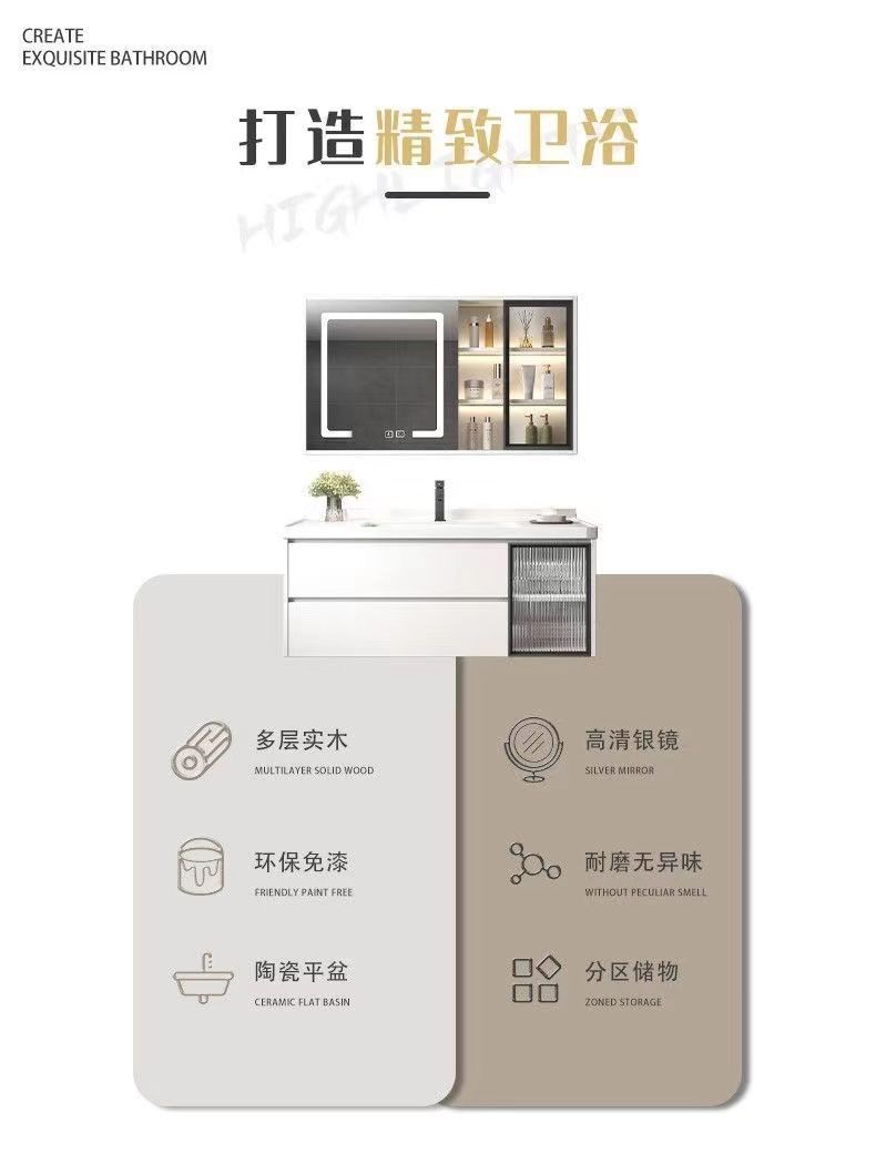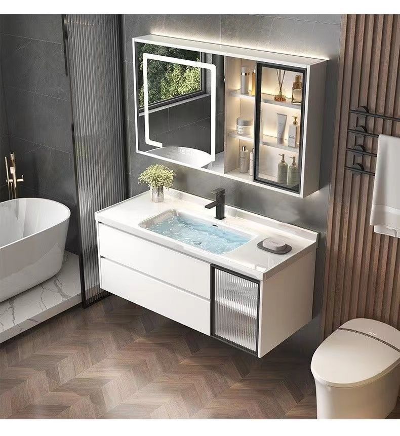 • 03 진주 흰색 바닥 캐비닛 지능형 정사이즈 거울 캐비닛-락 플레이트 100cm 수도꼭지 (10 년 보증)