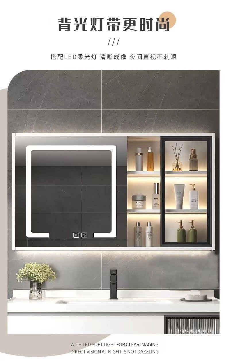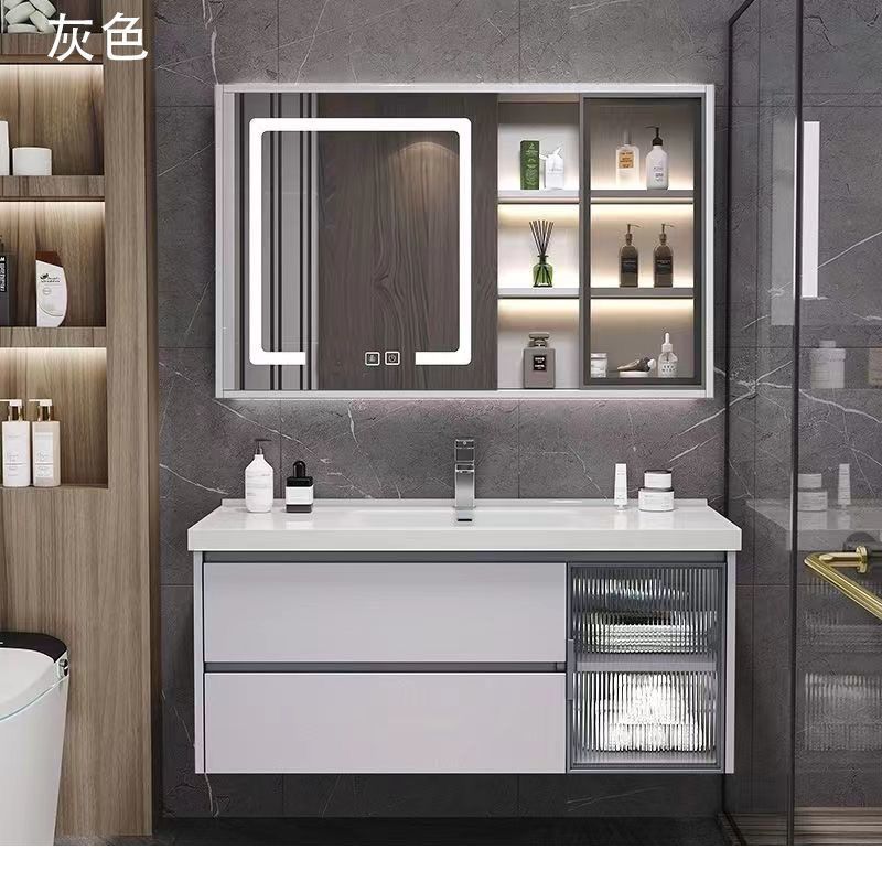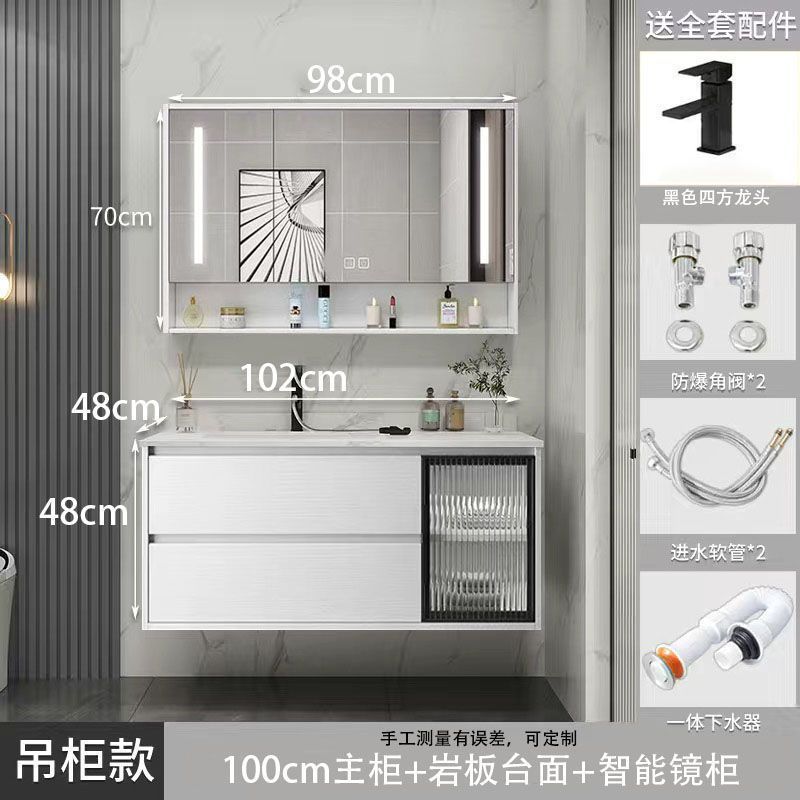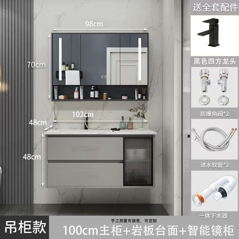 • 03 바위 회색 교수형 캐비닛 스마트 정사이즈 거울 캐비닛-100cm 배달 수도꼭지 (10 년 보증)