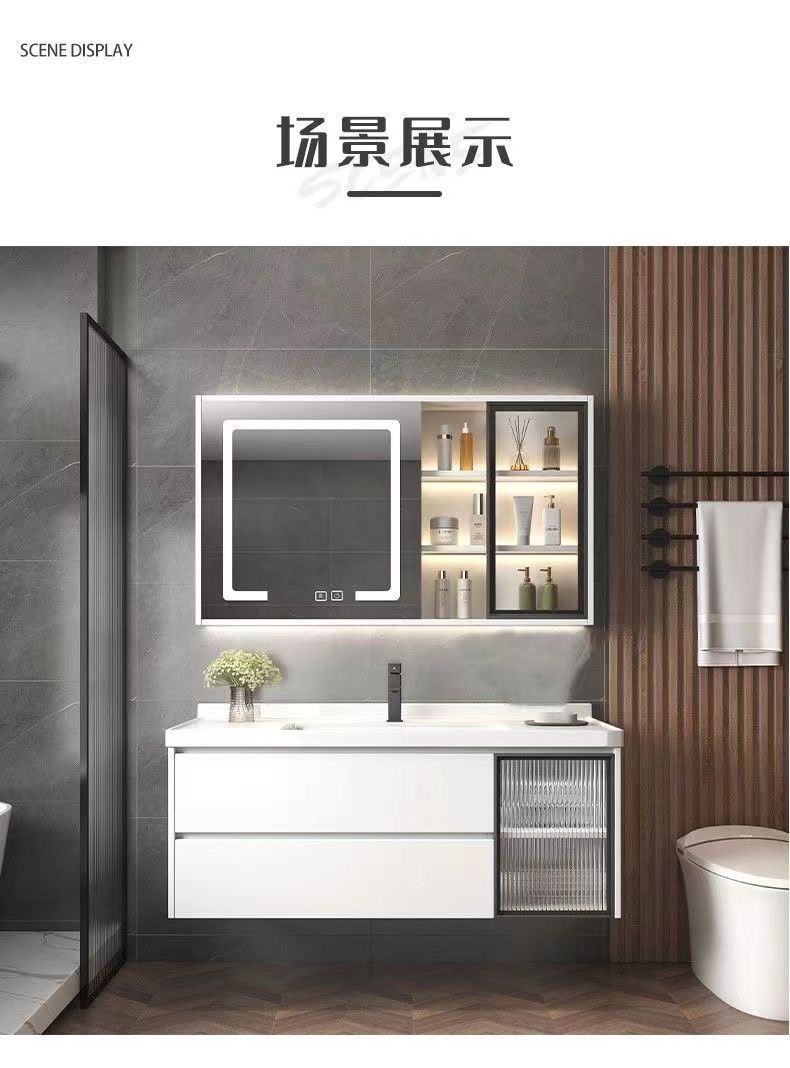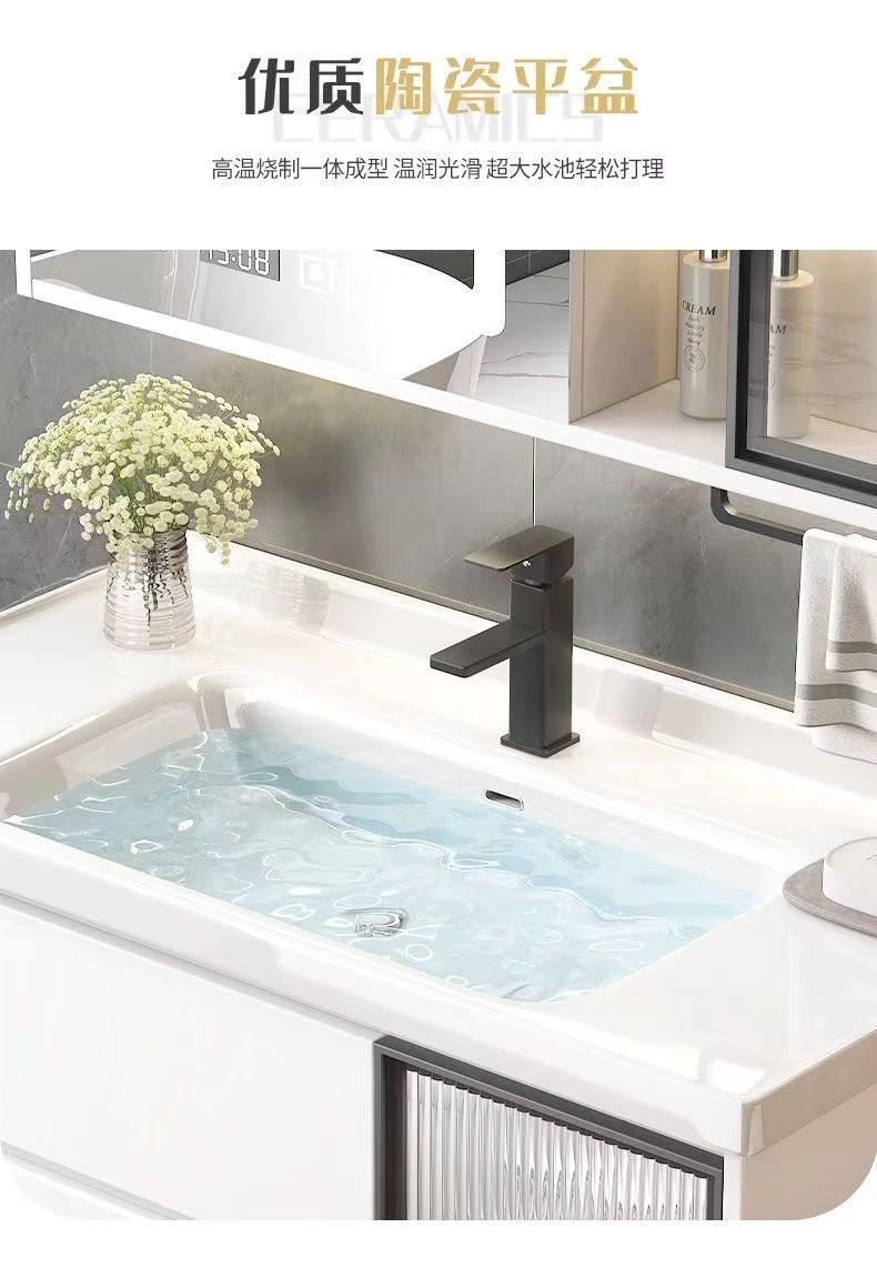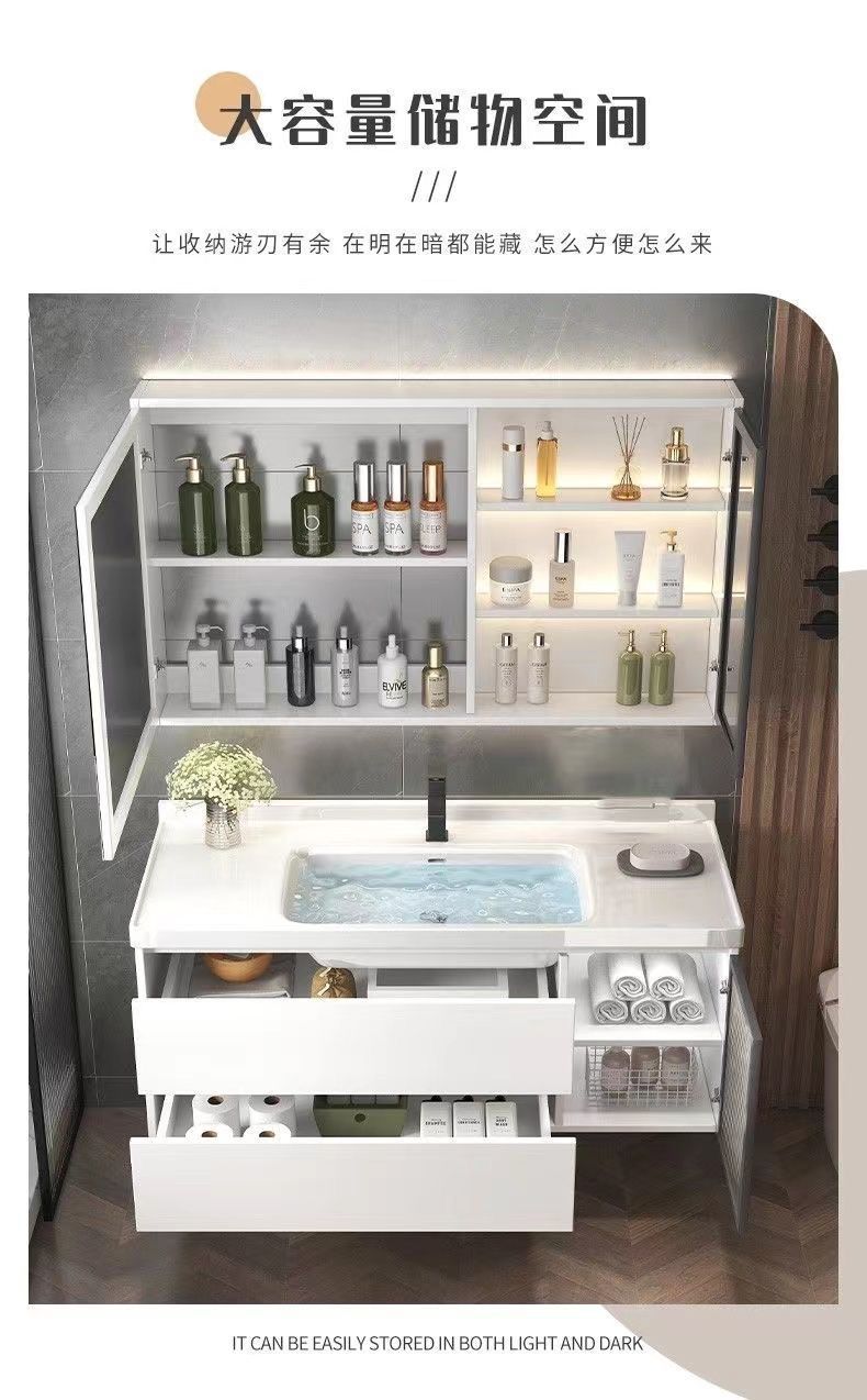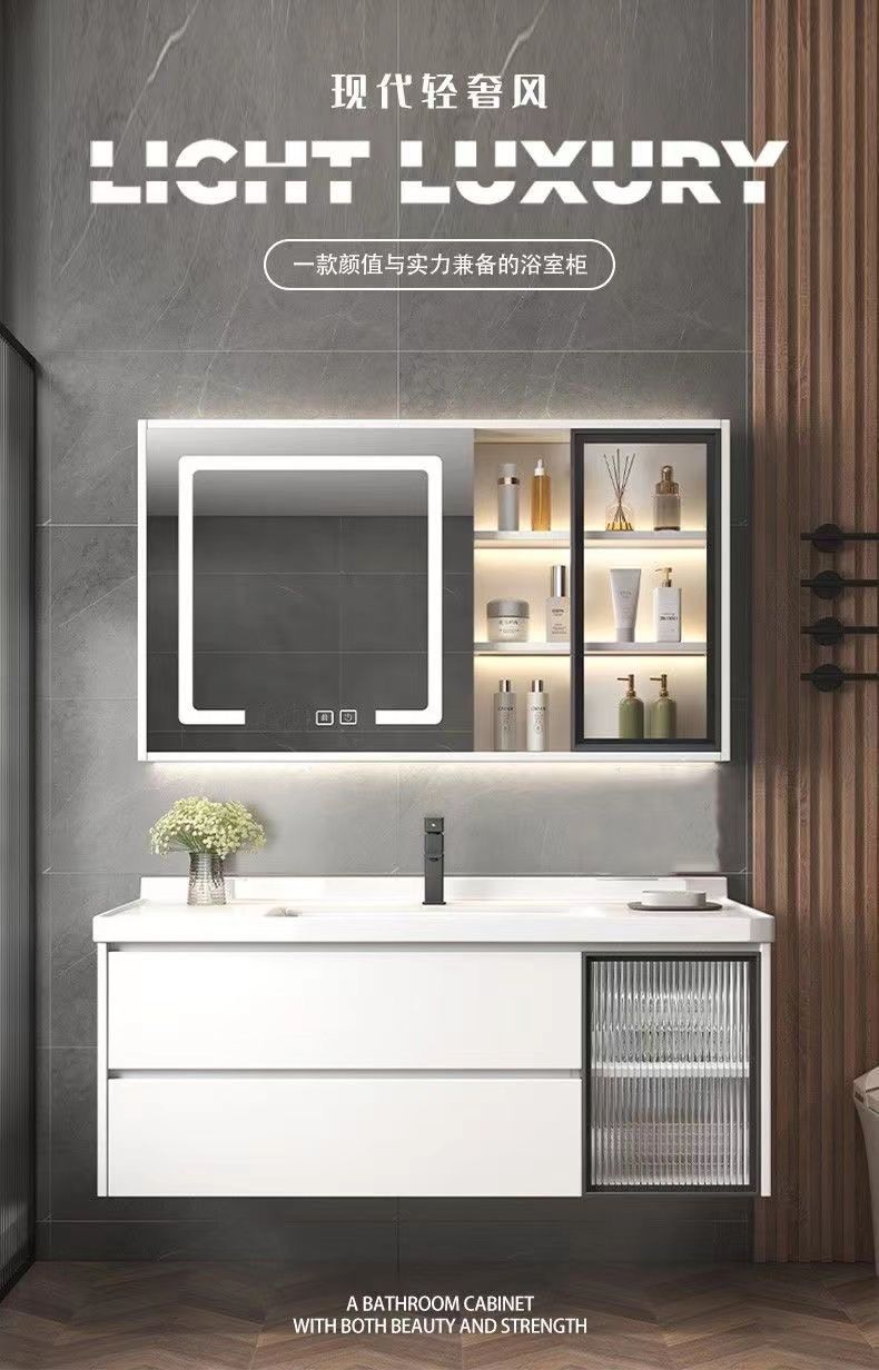 가벼운 럭셔리 간단한 욕실 캐비닛 조합 욕실 세라믹 올인원 분지 바위 보드 세면기 스마트 세면대 세트스토어 가기