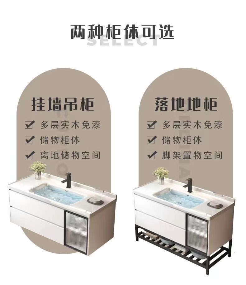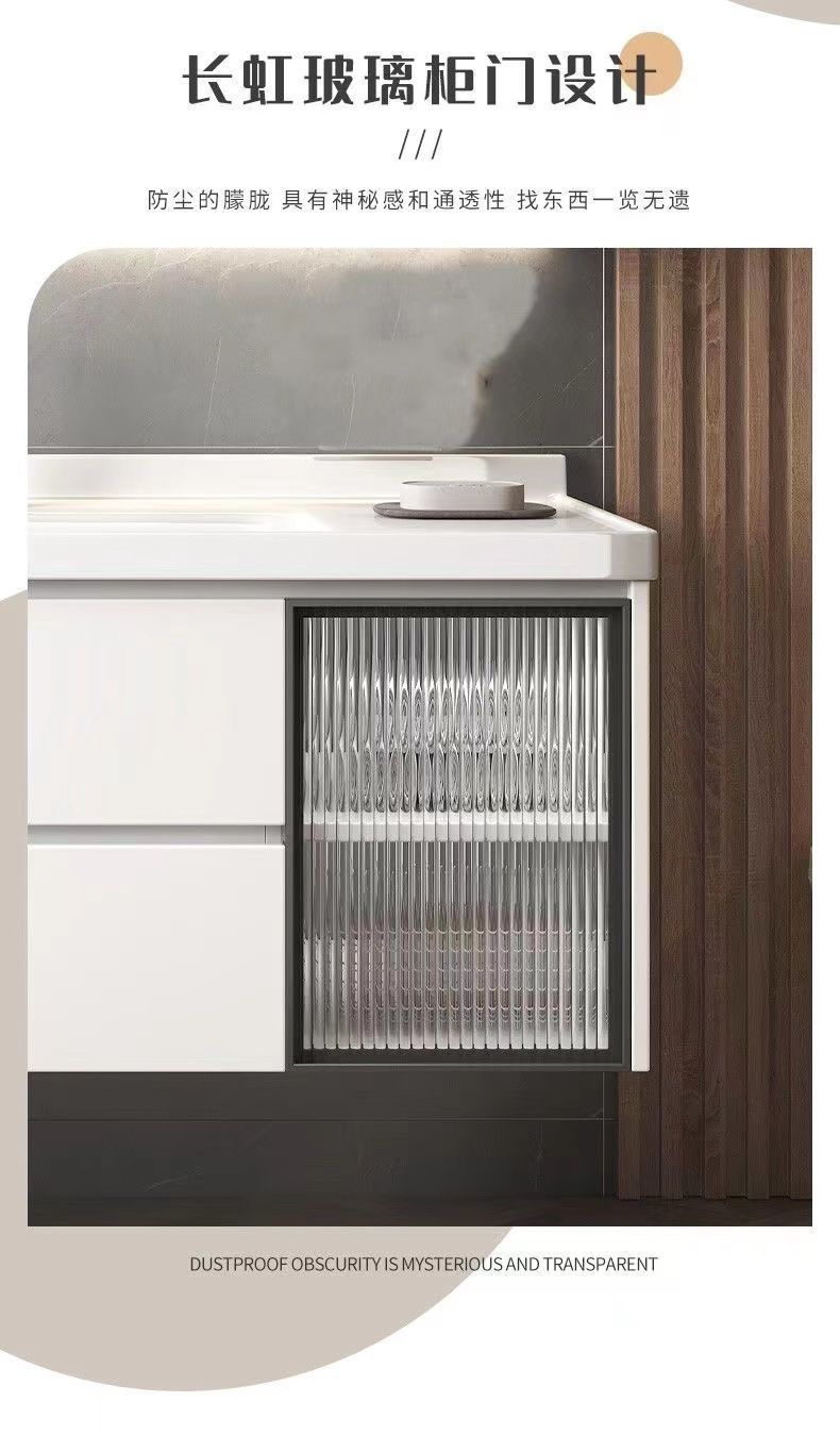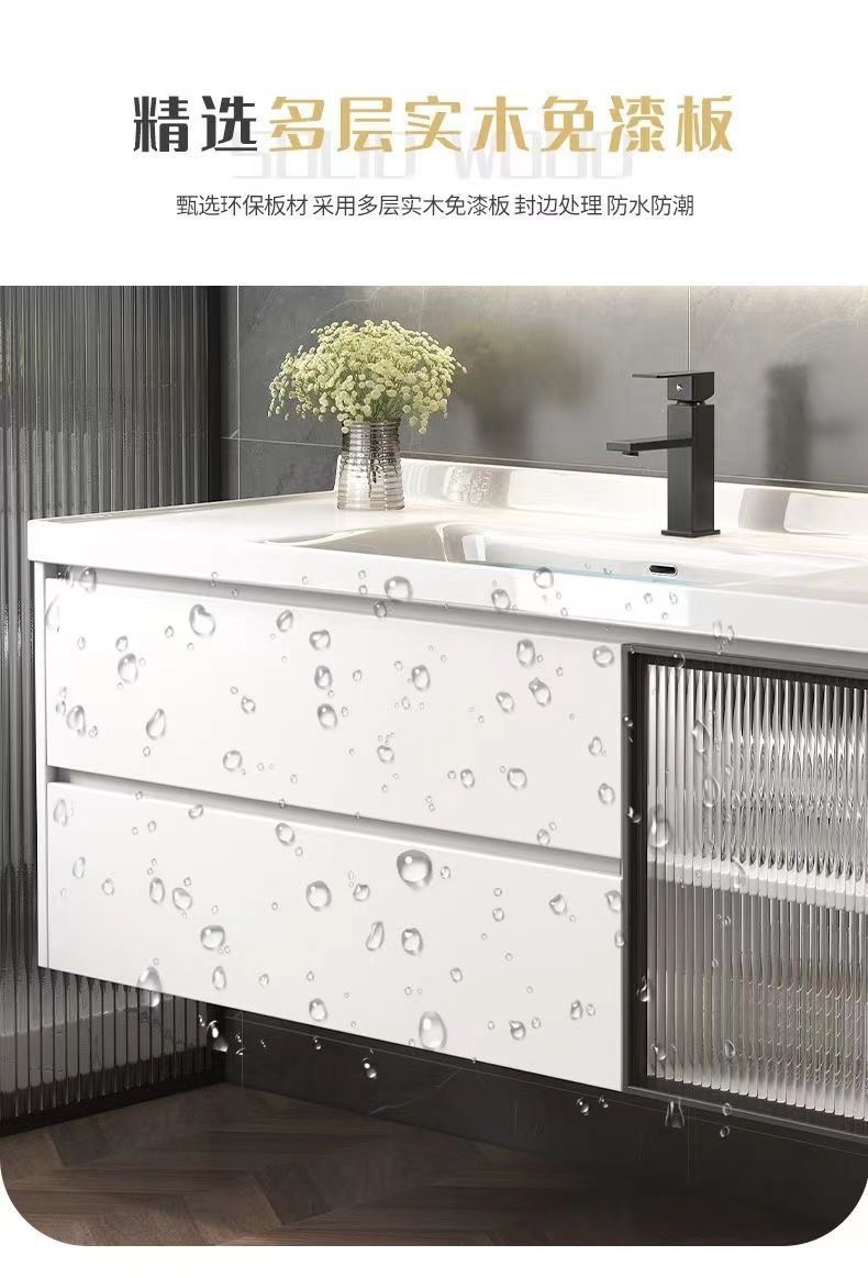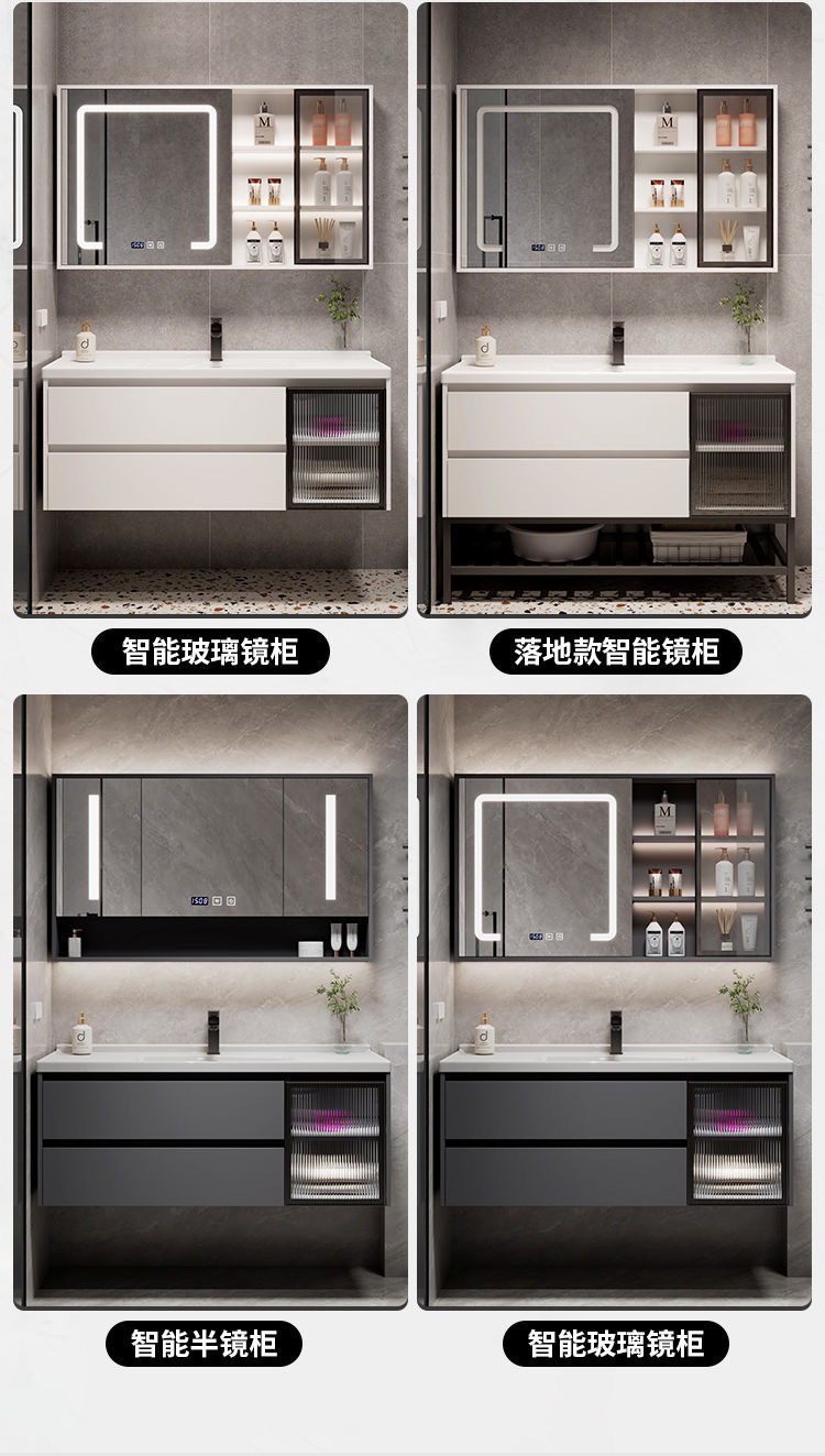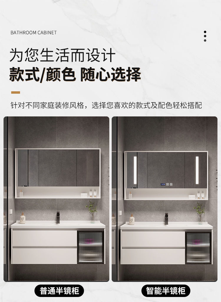 가벼운 럭셔리 간단한 욕실 캐비닛 조합 욕실 세라믹 올인원 분지 바위 보드 세면기 스마트 세면대 세트스토어 가기