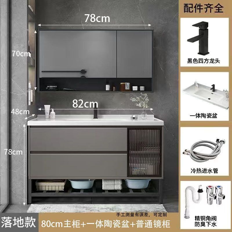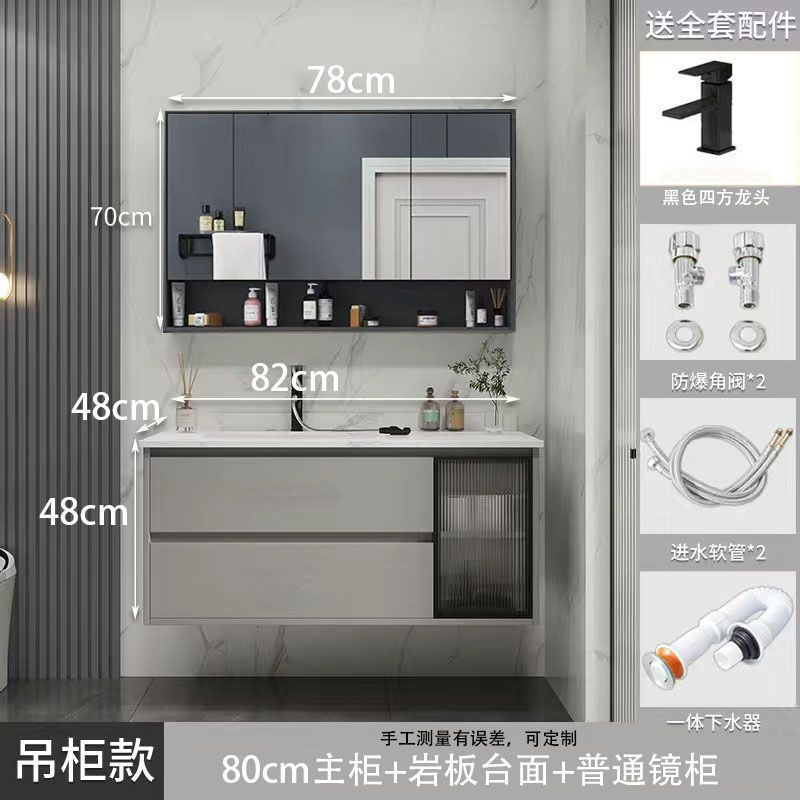 • 03 바위 회색 교수형 캐비닛 일반 정사이즈 거울 캐비닛-80cm 배달 수도꼭지 (10 년 보증)