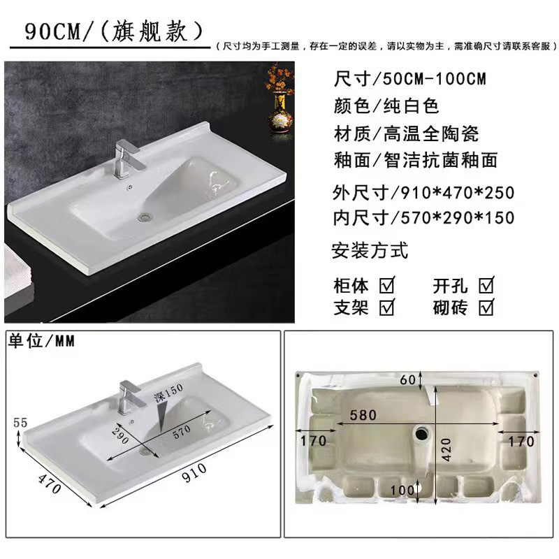 • 03 진주 흰색 바닥 캐비닛 일반 정사이즈 거울 캐비닛-암판 90cm 수도꼭지 (10 년 보증)
