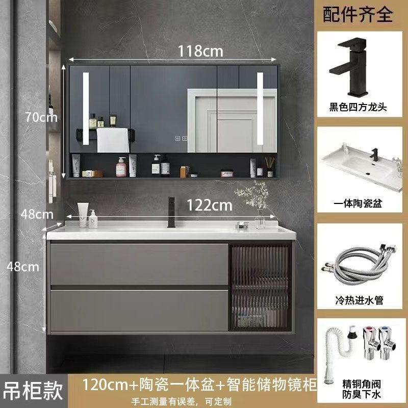 • 03 바위 회색 교수형 캐비닛 스마트 정사이즈 거울 캐비닛-120cm 배달 수도꼭지 (10 년 보증)