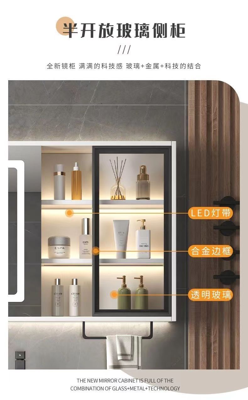 • 03 바위 회색 교수형 캐비닛 스마트 정사이즈 거울 캐비닛-90cm 배달 수도꼭지 (10 년 보증)