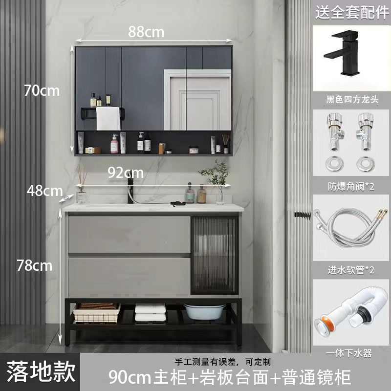 • 03 록 그레이 바닥 캐비닛 일반 정사이즈 거울 캐비닛-90cm 수도꼭지 (10 년 보증)