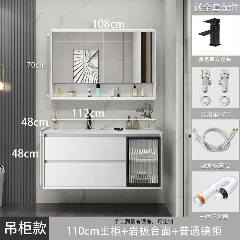 • 03 진주 흰색 교수형 캐비닛 일반 정사이즈 거울 캐비닛-록 플레이트 110cm 수도꼭지 (10 년 보증)