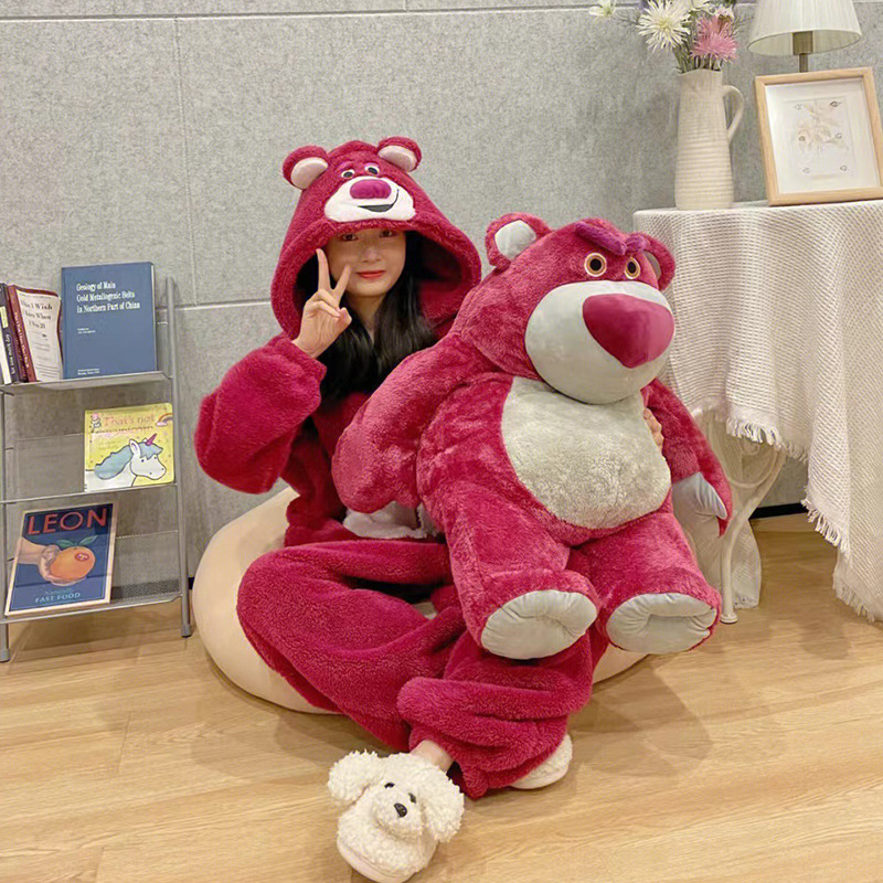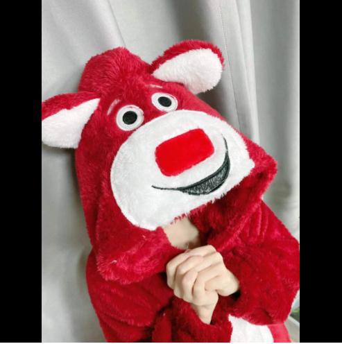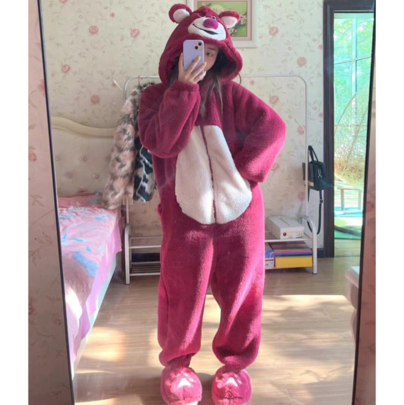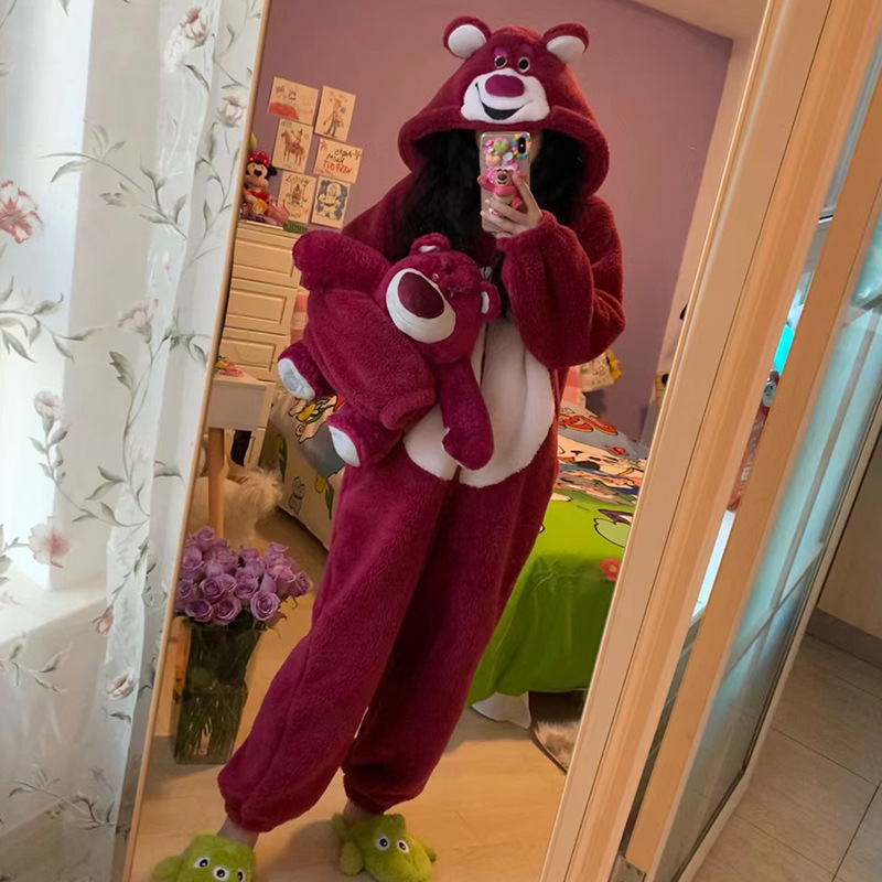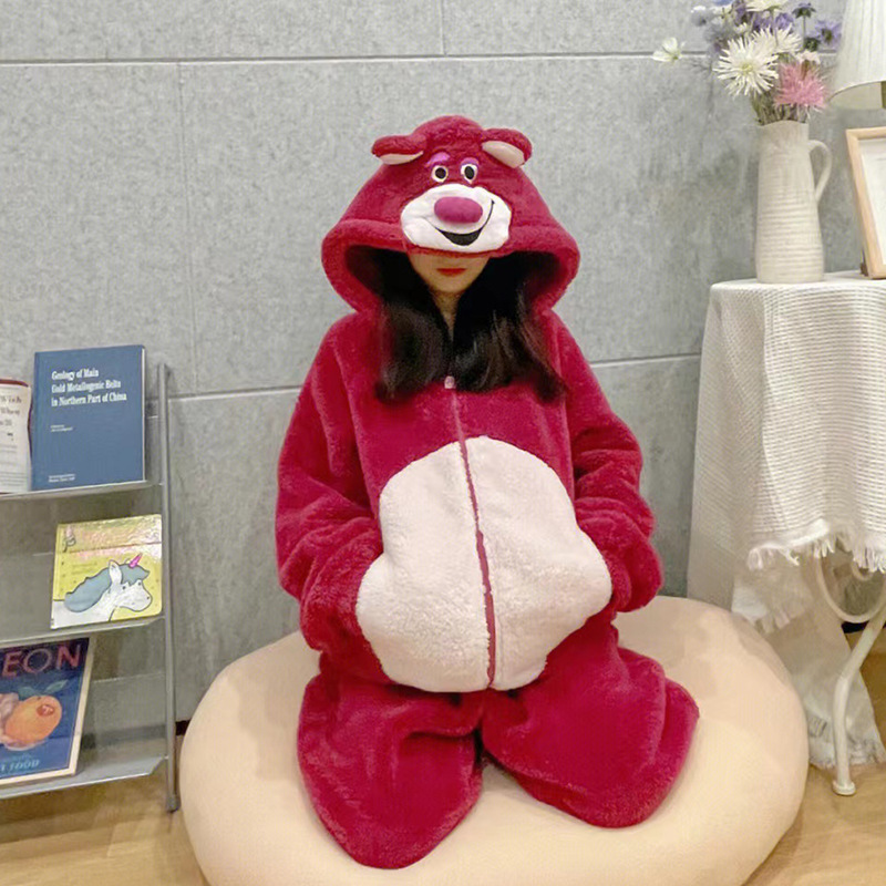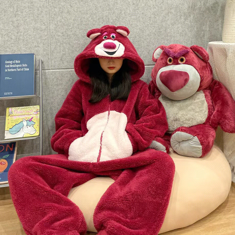 두꺼운 하이 퀄리티 산호 양털 곰 만화 동물 잠옷 여성의 겨울 플란넬 홈 옷 커플스토어 가기
