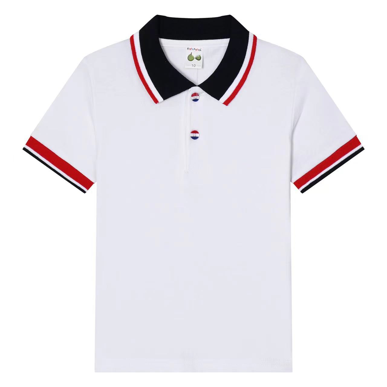 키즈 아동 반팔 티셔츠 소년 소녀 초등 및 중학교 교복을위한 순면 흰색 옷깃 폴로 셔츠