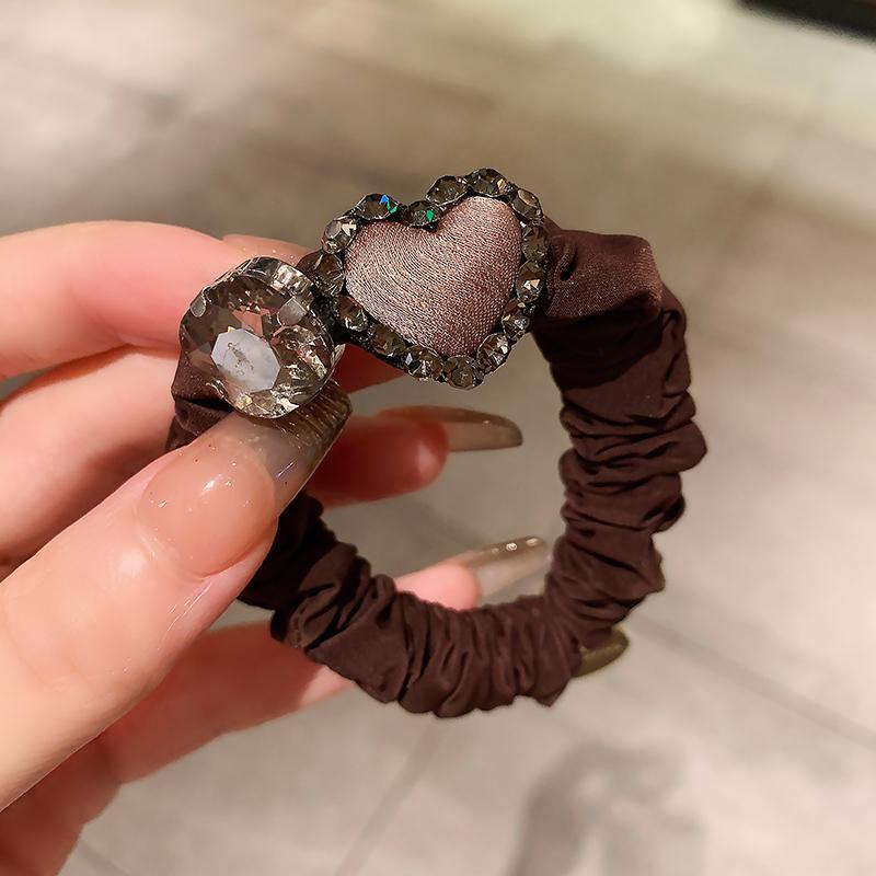 2025 동대문 신상 하트 다이아몬드 머리끈 여성용 포니테일 헤어밴드 한국 스타일 볼헤어 밴드 고무줄 헤어 액세서리