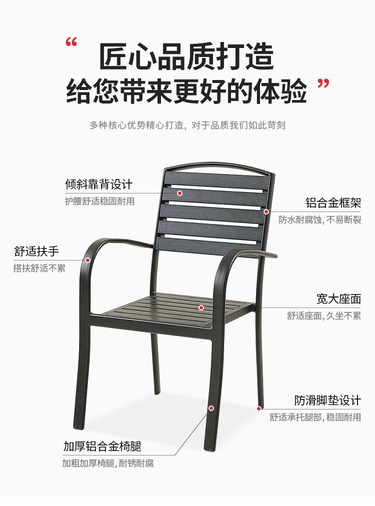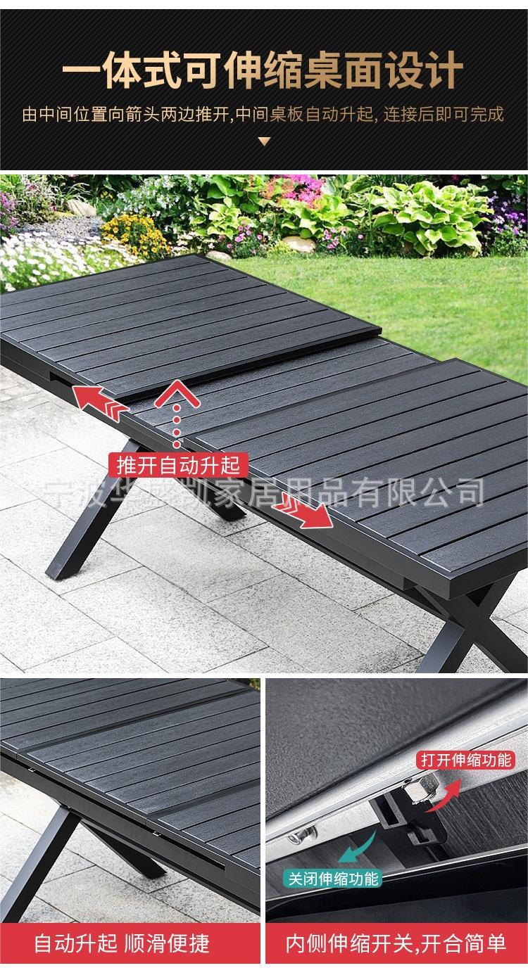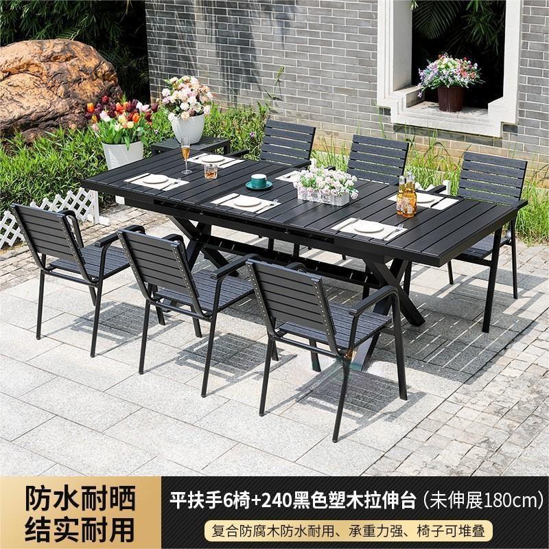 • 평평한 팔걸이 6 의자 + 240cm 검은 색 플라스틱 목재 스트레칭 테이블 (180cm 늘어나지 않음)