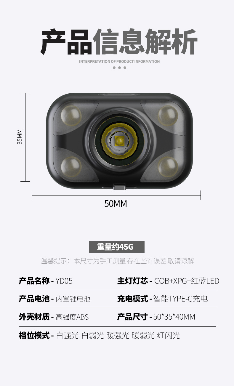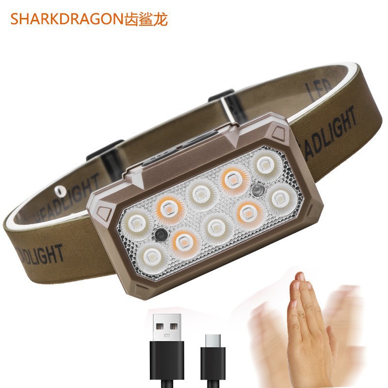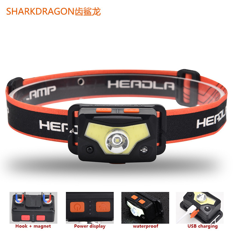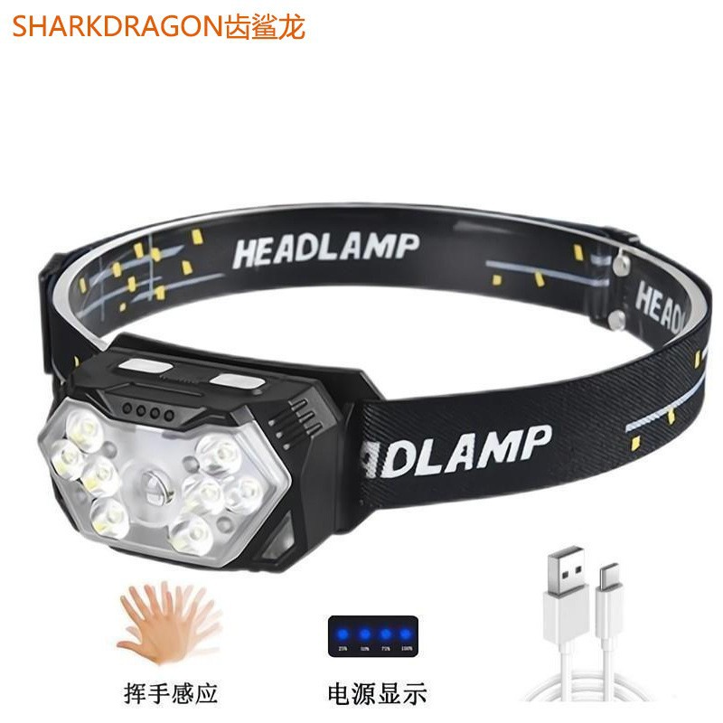 크로스 보더 뉴 인덕션 헤드라이트 USB 충전 디지털 전기 디스플레이 야외 러닝 라이딩 낚시 경량 LED 헤드라이트