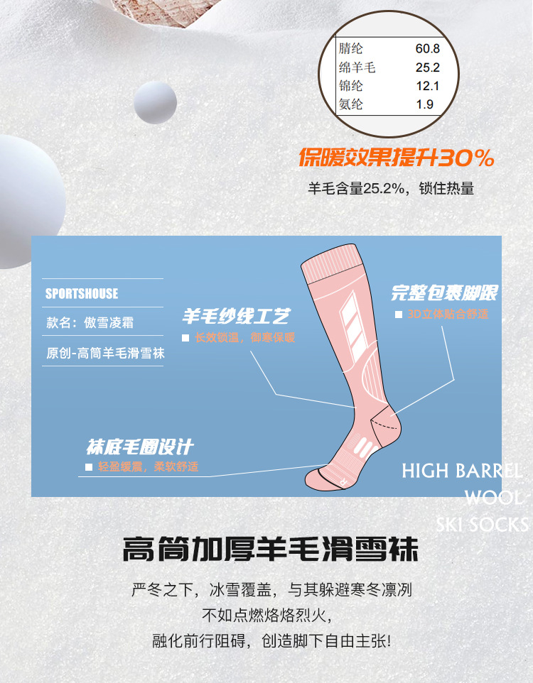 스포츠 하우스 여성용 겨울 긴 두꺼운 테리 클라이밍 메리노 울 스키 양말