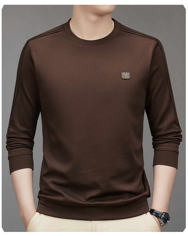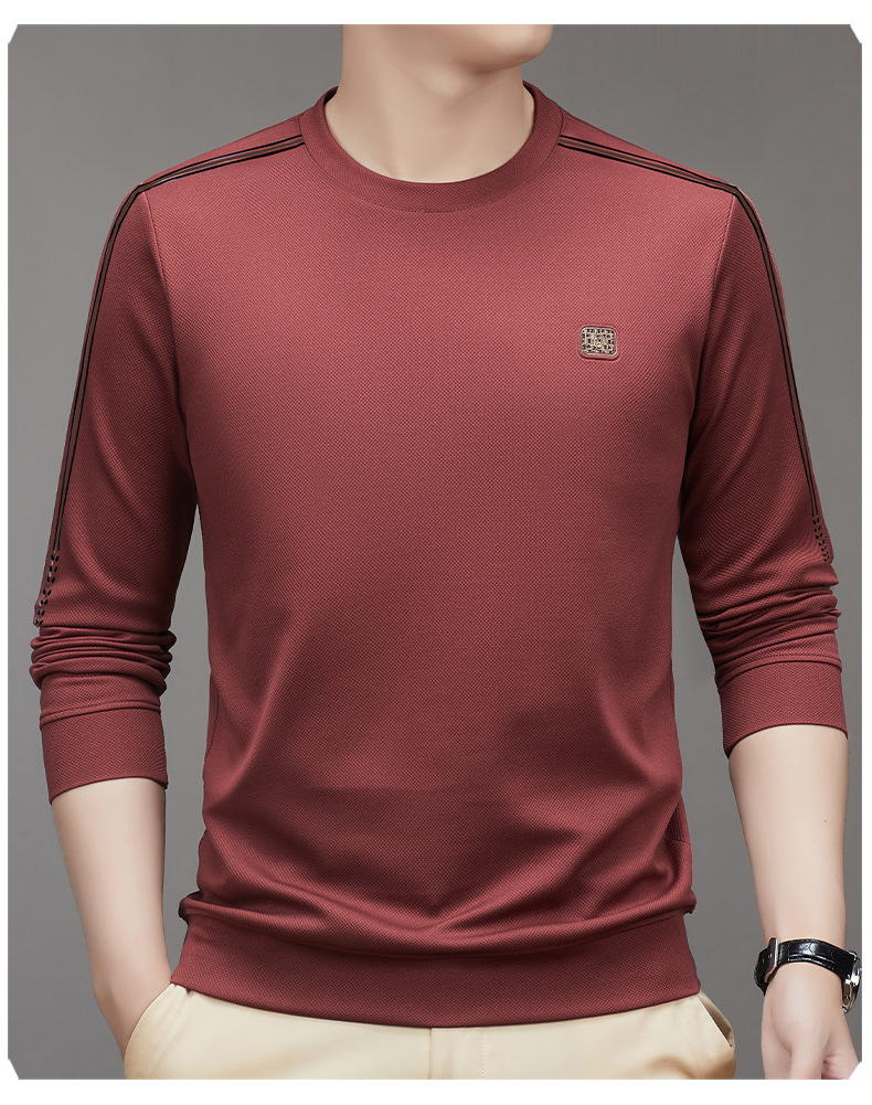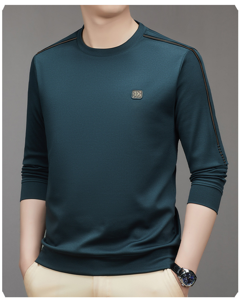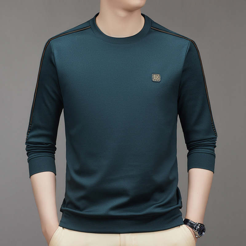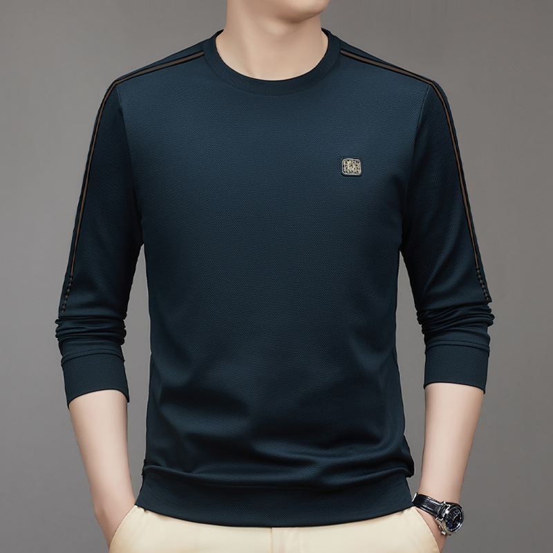 2023 가을 긴팔 티셔츠 남성베이스 셔츠 젊은 중년 라운드 넥 패션 트렌디 스웨터 남성용 원피스스토어 가기