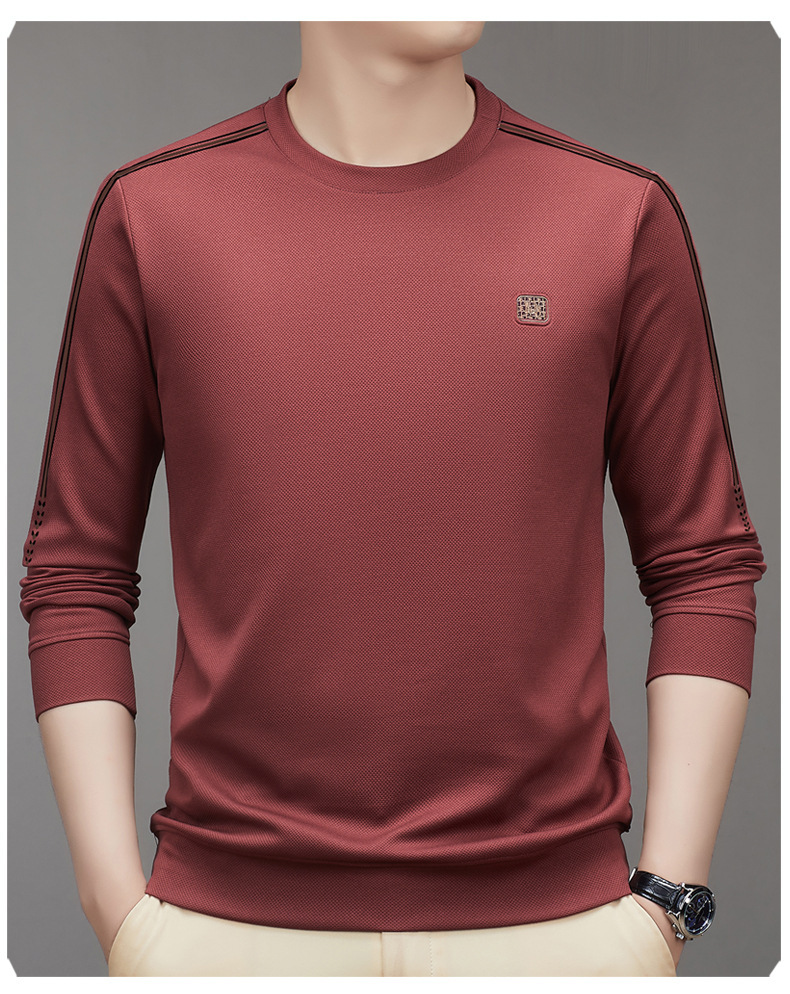 2023 가을 긴팔 티셔츠 남성베이스 셔츠 젊은 중년 라운드 넥 패션 트렌디 스웨터 남성용 원피스