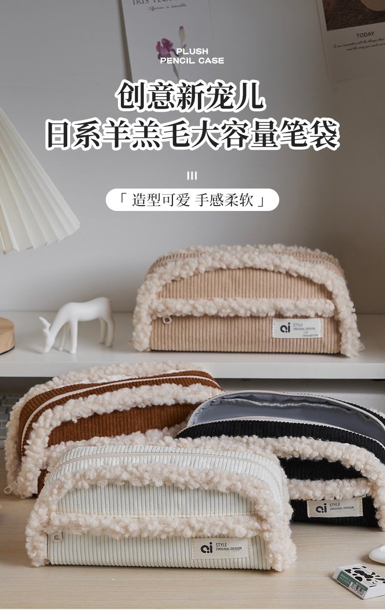인터넷 유명 인사 폭발성 코듀로이 단색 연필 가방 틈새 연필 가방 대용량 문구 저장 가방 Xiaoxiang 클래식 우아함스토어 가기