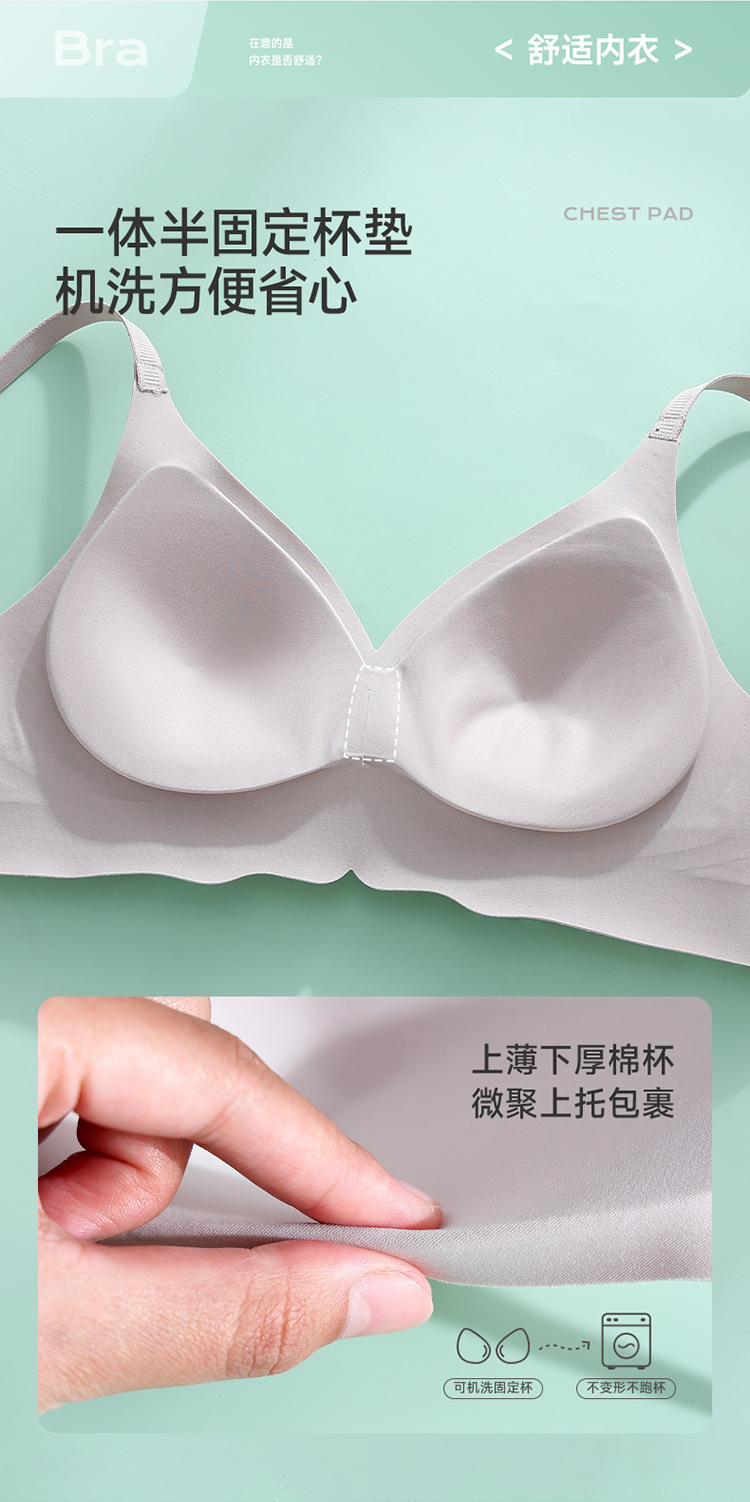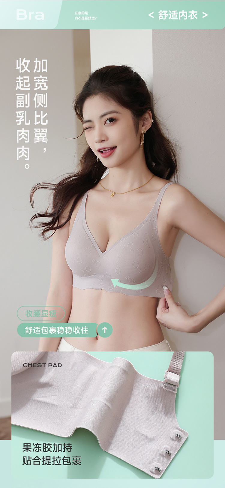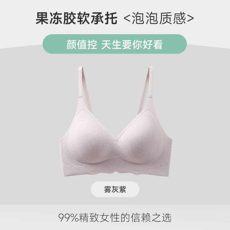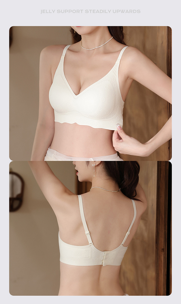 Amoy 파이 지원 젤리 접착제 속옷 여성용 브래지어 소프트 지원 원활한 작은 가슴 푸시 업 여성용 스틸 링 고정 컵 없음