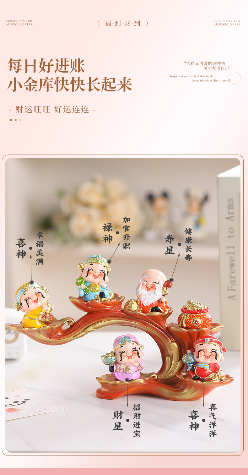 크리 에이 티브 Wufu 부의 신 행운의 축제 집 사무실 입구 거실 장식 작은 장식품 열기 선물스토어 가기