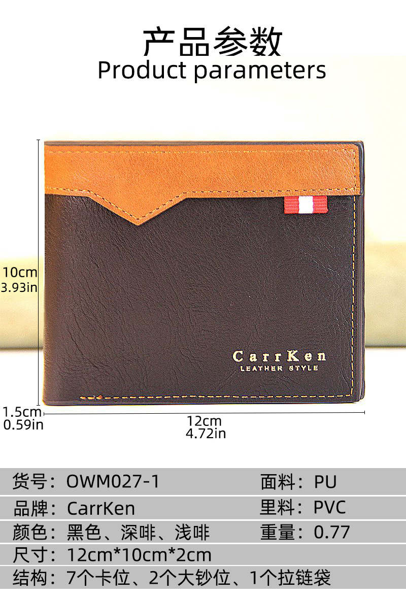 국경 간 유럽 및 미국 남성 비즈니스 지갑 청소년 멀티 카드 3 배 리치 패턴 지갑 스티칭 리본 지퍼 카드 홀더