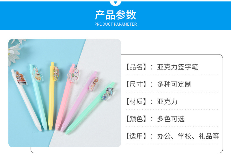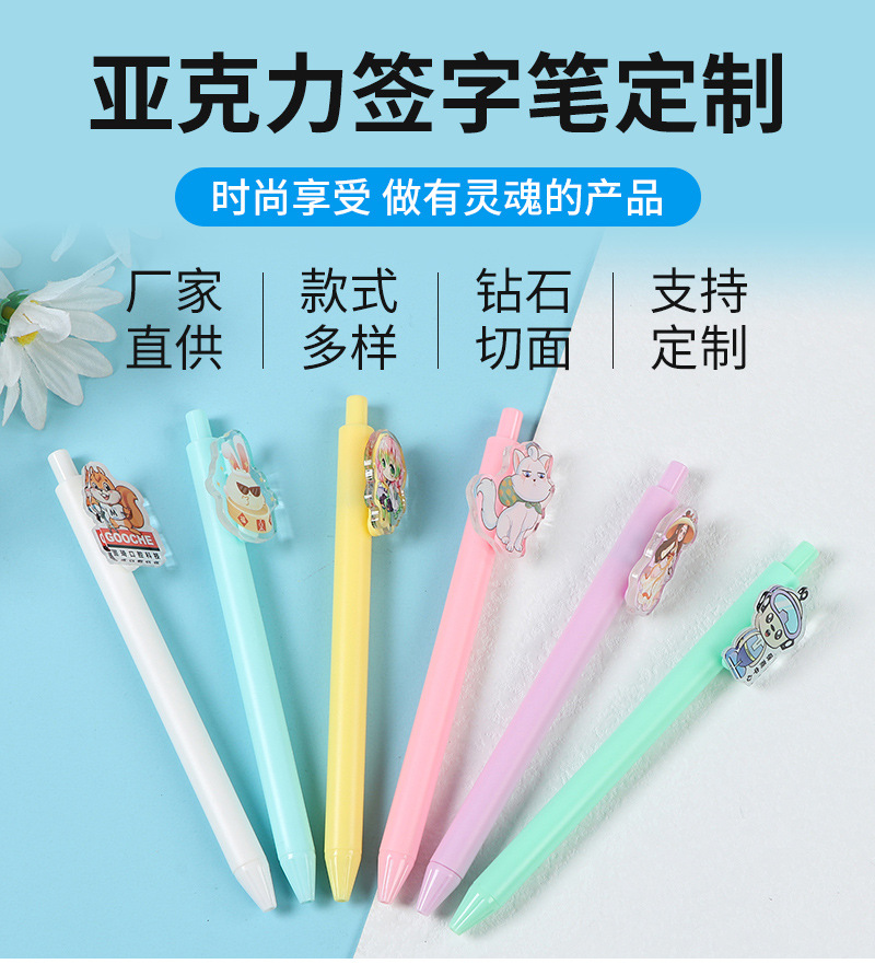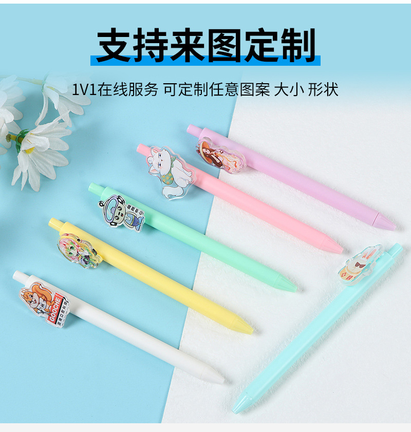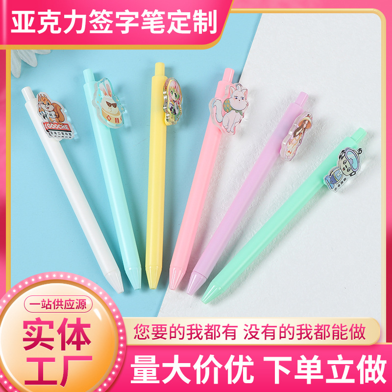 아크릴 젤 펜 총알 애니메이션 만화 플라스틱 서명 펜 도매 학생 사무실 광고 펜스토어 가기