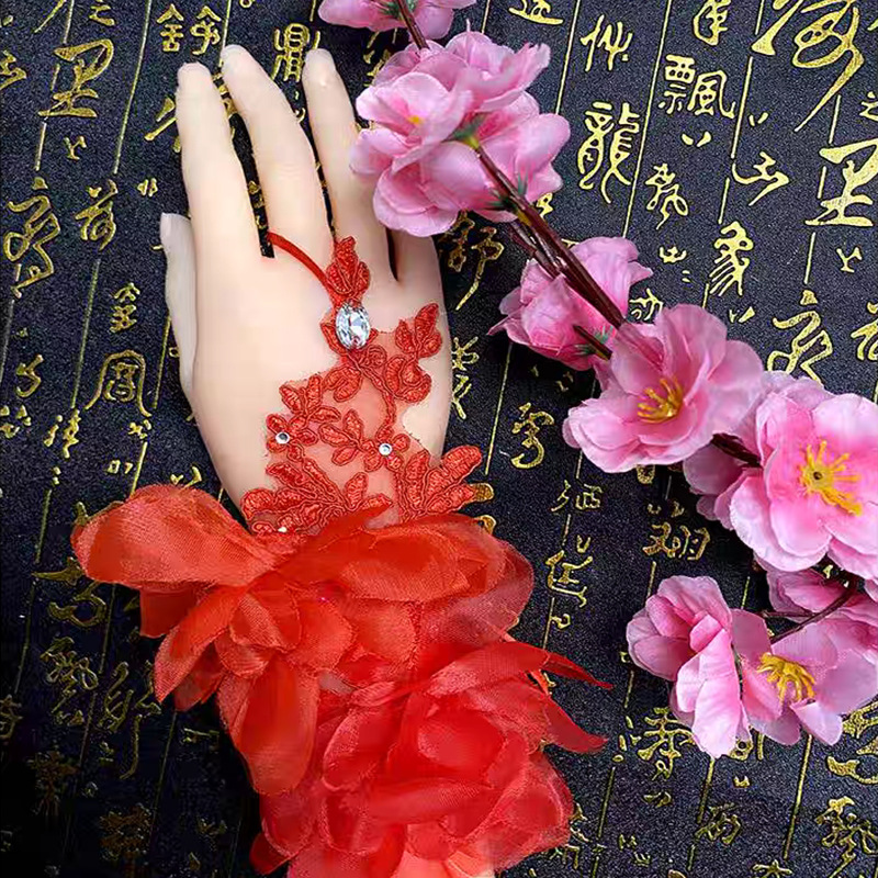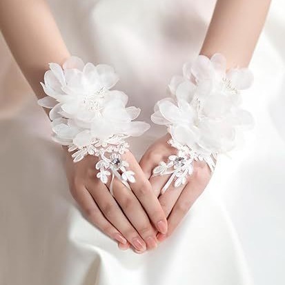 모리 꽃 소녀 어린이 장갑 화이트 레이스 원피스 웨딩 소녀의 공연 짧은 후크 손가락 춤 장식스토어 가기