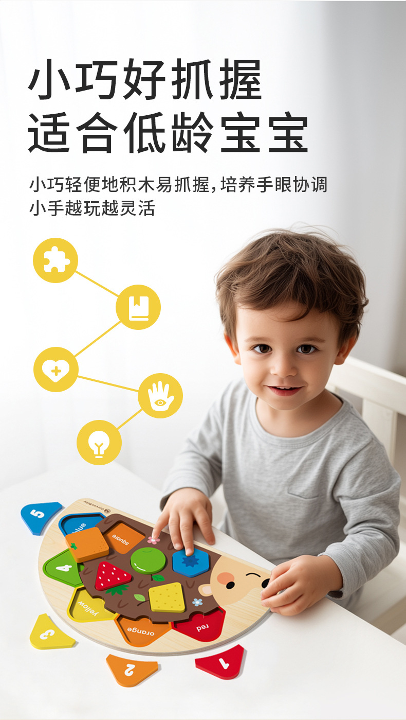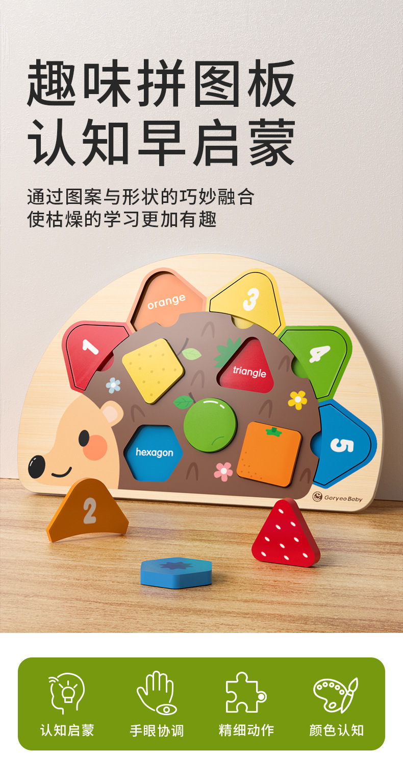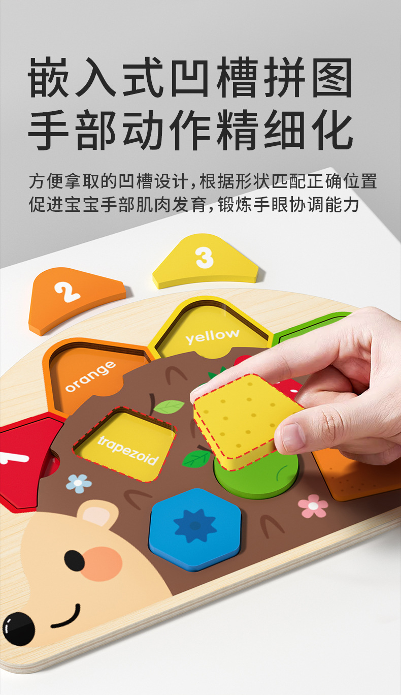 재미있는 고슴도치 퍼즐 아기 퍼즐 조기 교육 휴대용 보드 컬러 모양 계몽인지 기하학적 매칭 퍼즐 보드스토어 가기