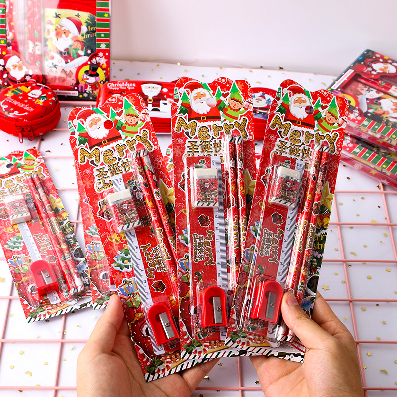 크리스마스 문구 세트 초등학생 연필 지우개 자 조합 세트 어린이 졸업 시즌 61 작은 선물