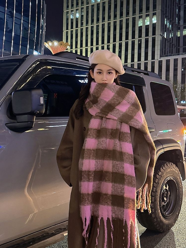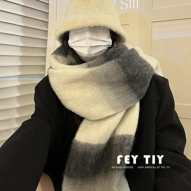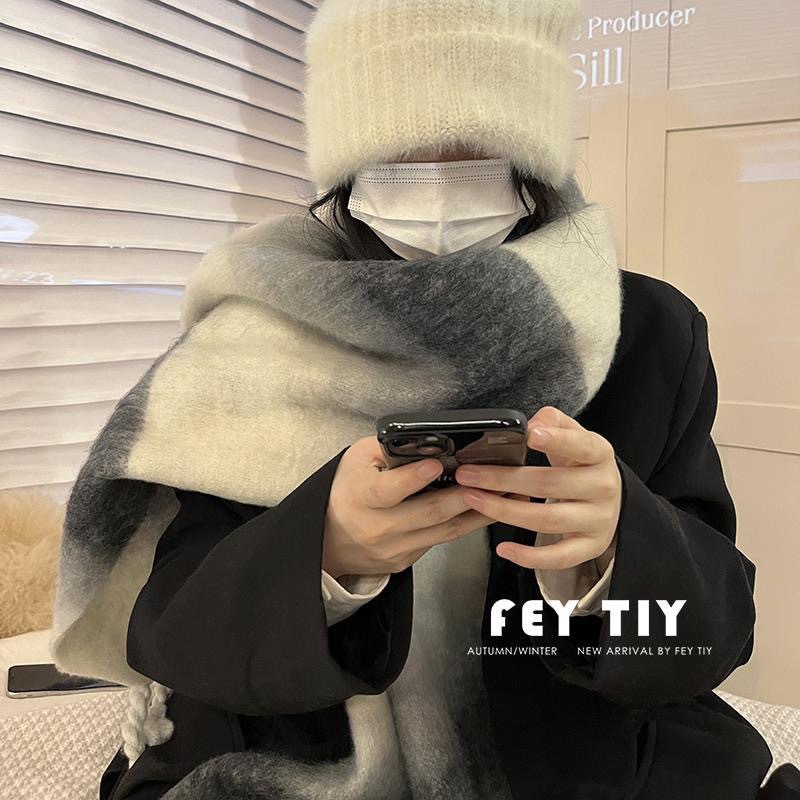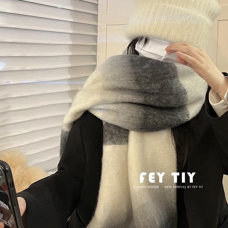 Maillard 그라디언트 격자 무늬 스카프 여성의 겨울 하이 엔드 센스 따뜻한 목 한국 새로운 캐시미어 목도리스토어 가기