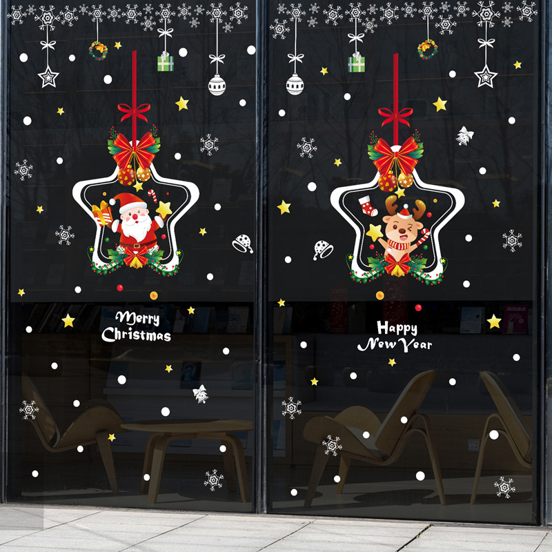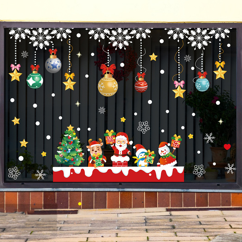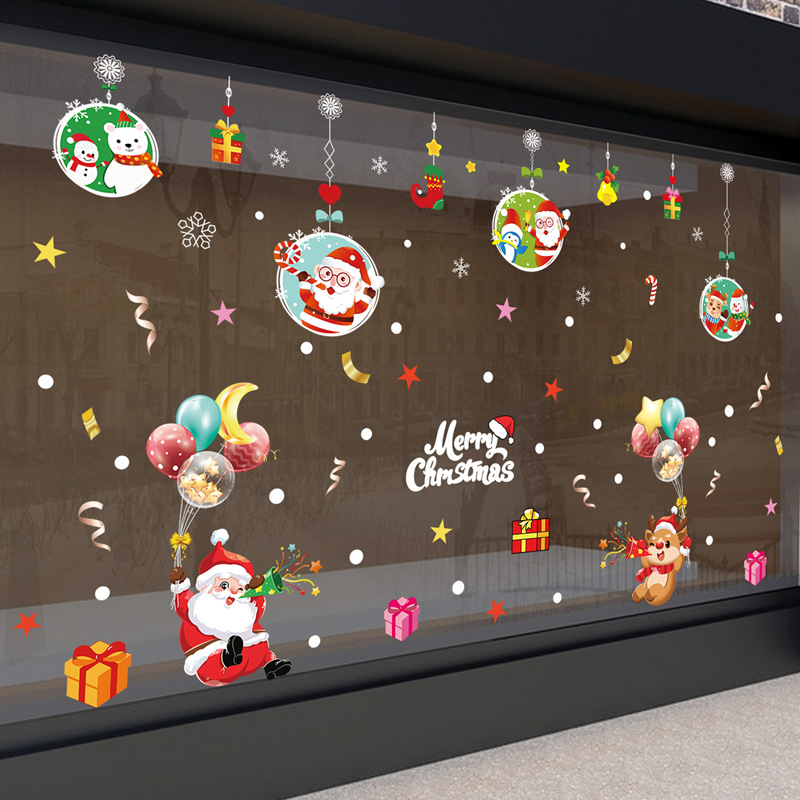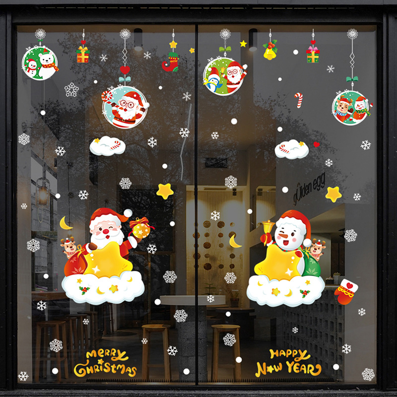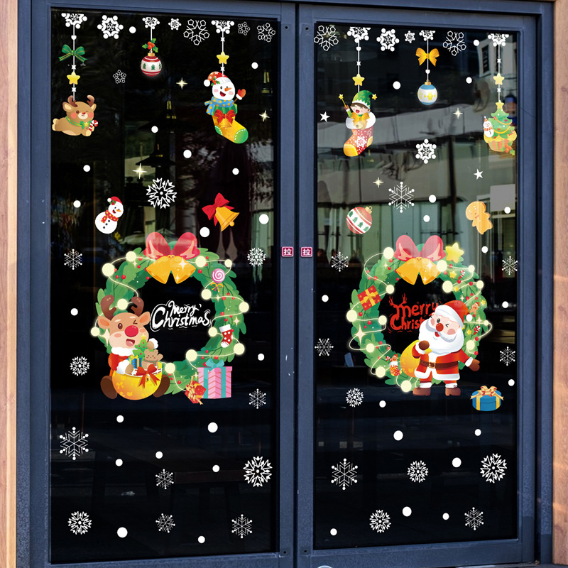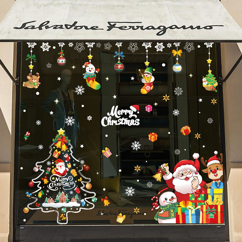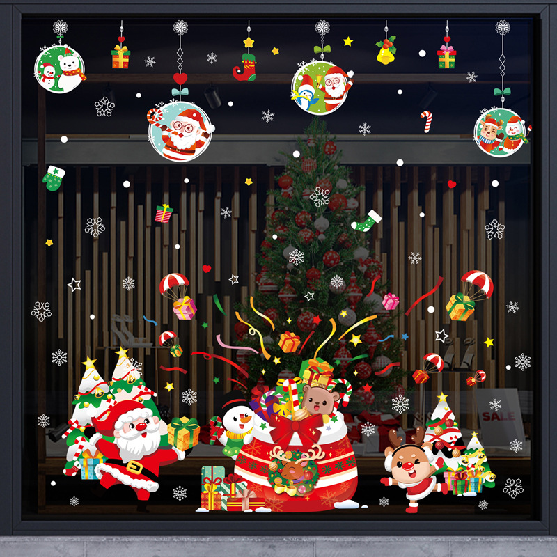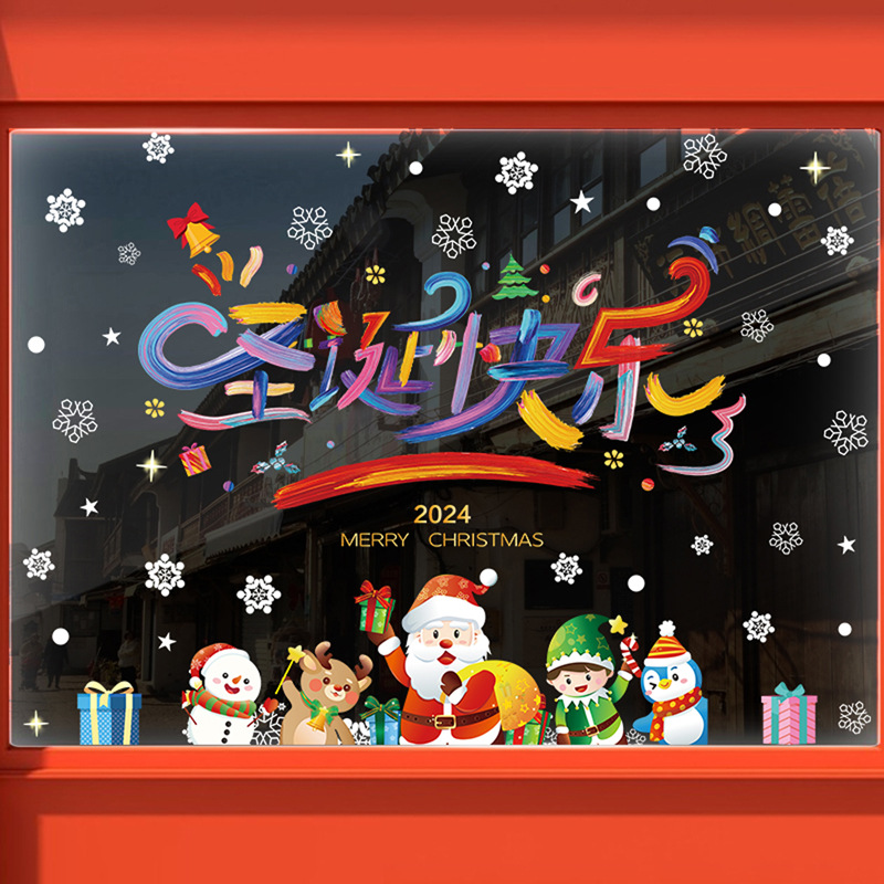 2024 크리스마스 스티커 쇼핑몰 상점 창 슬라이딩 도어 정전기 스티커 크리스마스 만화 장식 스티커스토어 가기