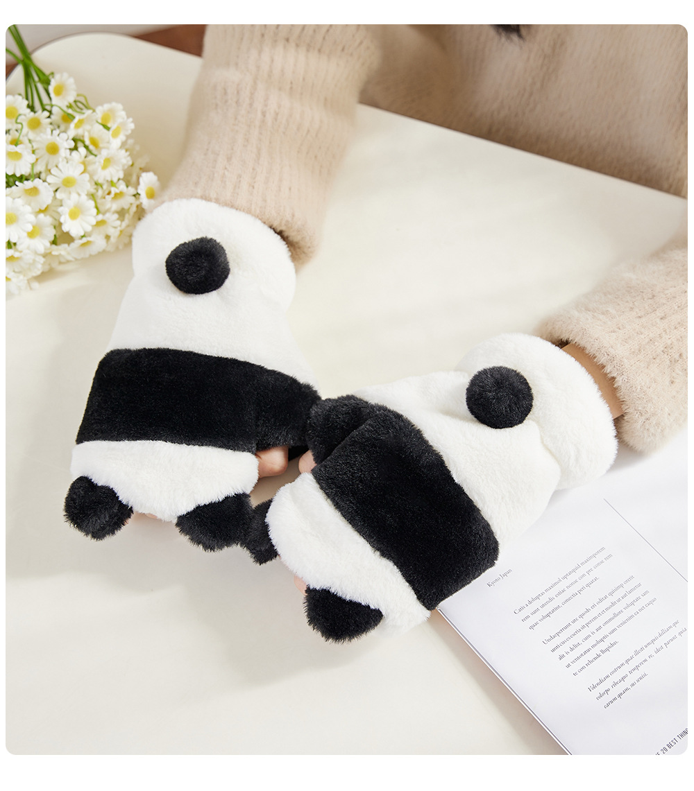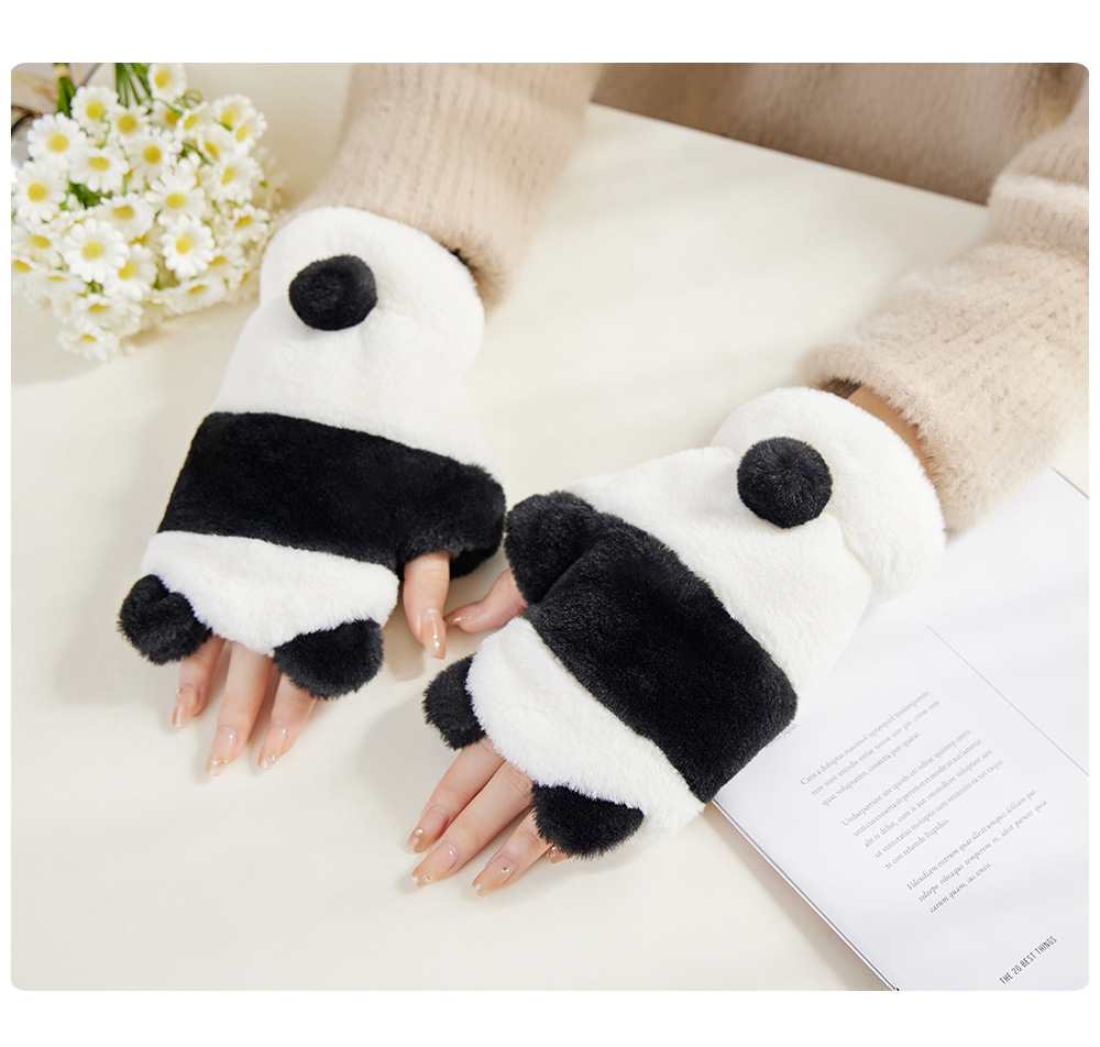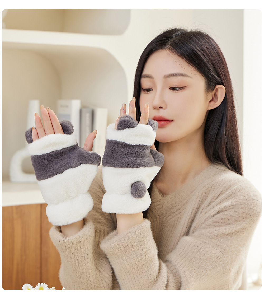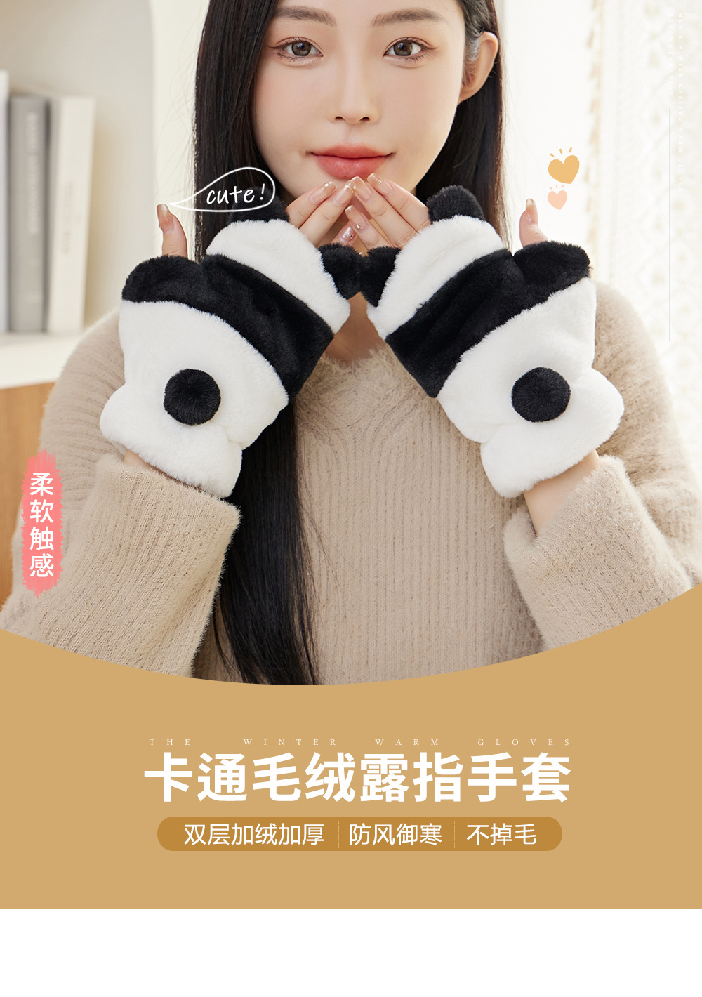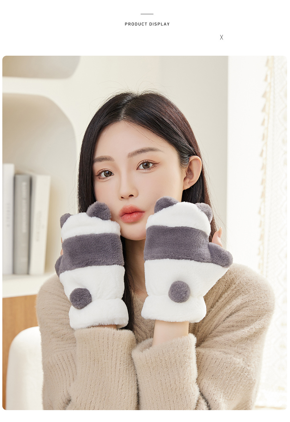 겨울에 여성을위한 장갑 귀여운 봉제 두꺼운 학생 반 손가락 오픈 손가락 한국의 가을과 겨울 기모 따뜻한 사이클링 동결 방지