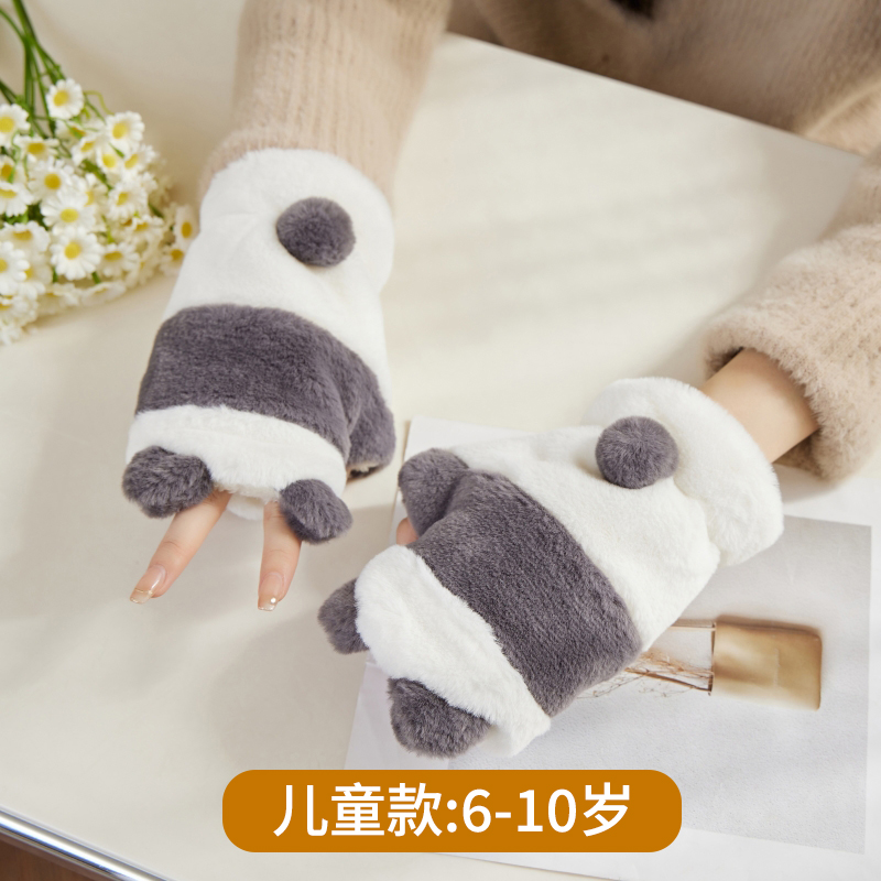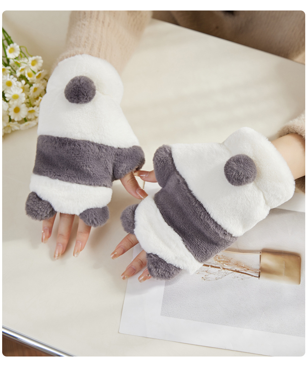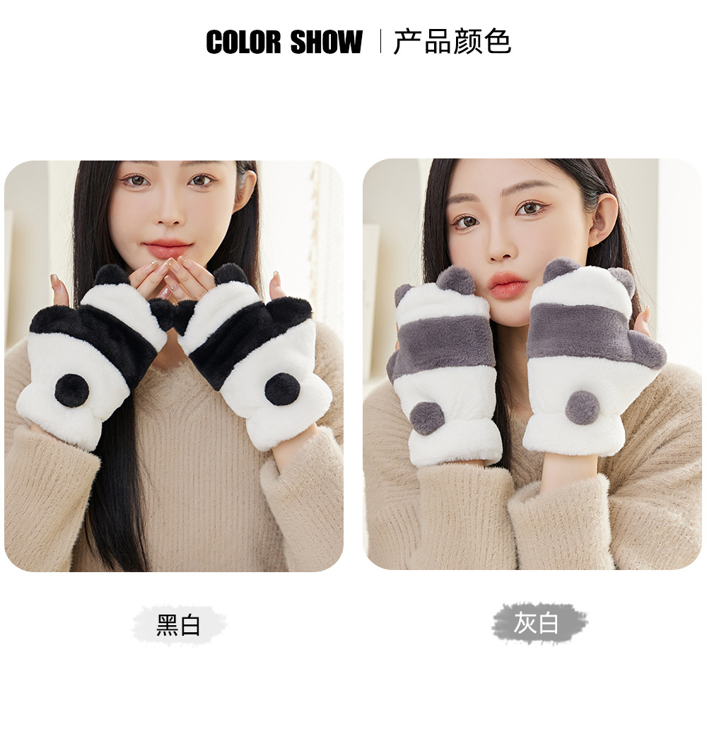 겨울에 여성을위한 장갑 귀여운 봉제 두꺼운 학생 반 손가락 오픈 손가락 한국의 가을과 겨울 기모 따뜻한 사이클링 동결 방지스토어 가기