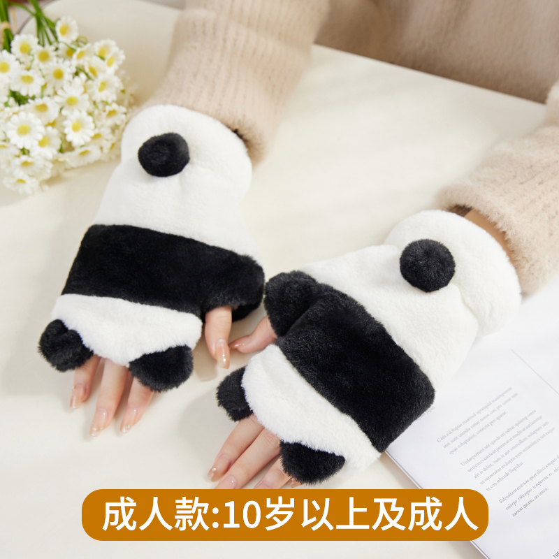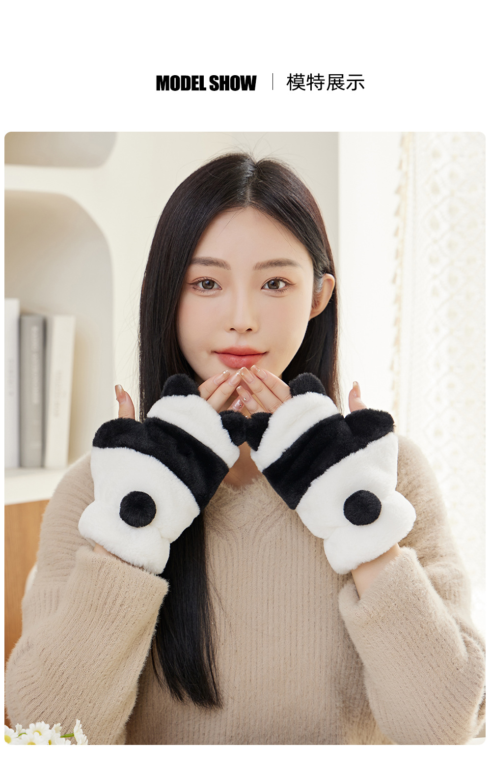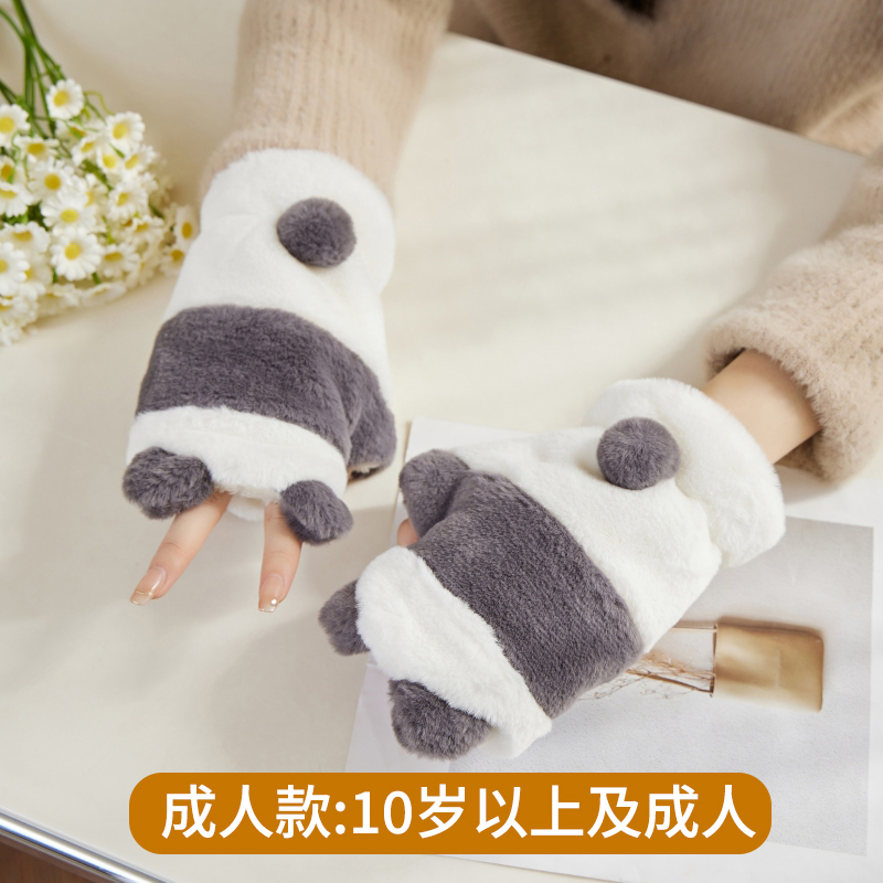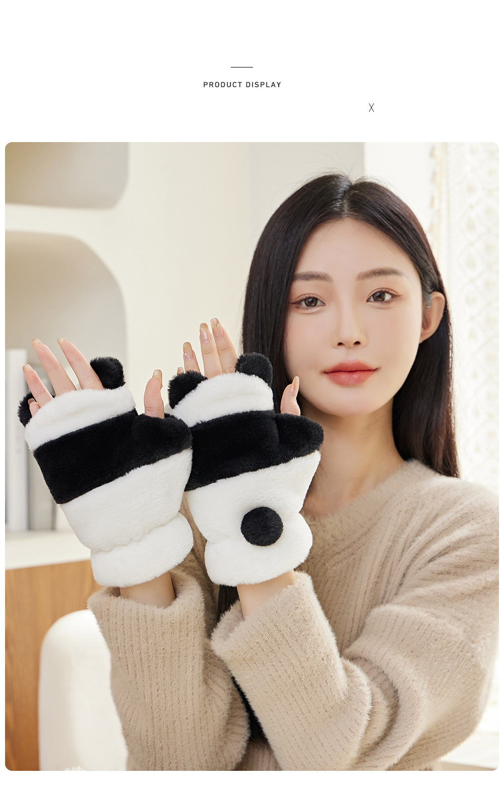 겨울에 여성을위한 장갑 귀여운 봉제 두꺼운 학생 반 손가락 오픈 손가락 한국의 가을과 겨울 기모 따뜻한 사이클링 동결 방지스토어 가기