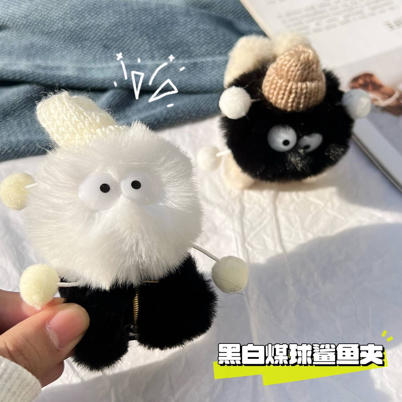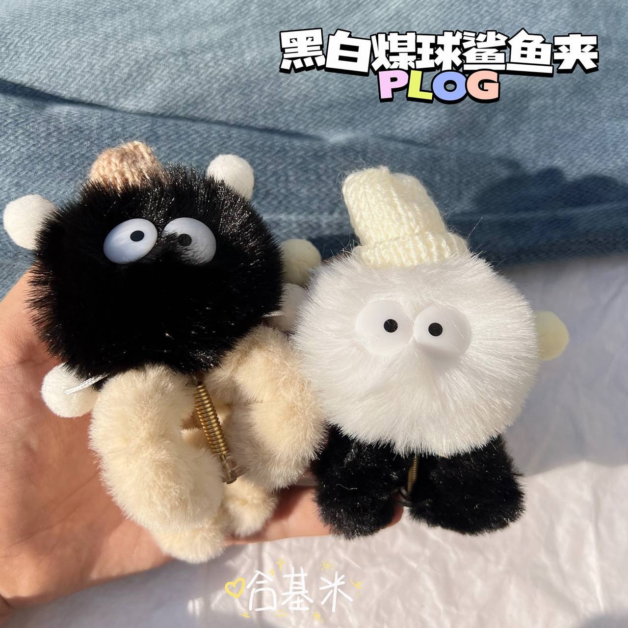 가을과 겨울 흑백 석탄 공 만화 잡아 클립 헤어 볼 봉제 상어 클립 귀여운 슈퍼 귀여운 머리핀 여성용 폭발성 헤어 액세서리스토어 가기