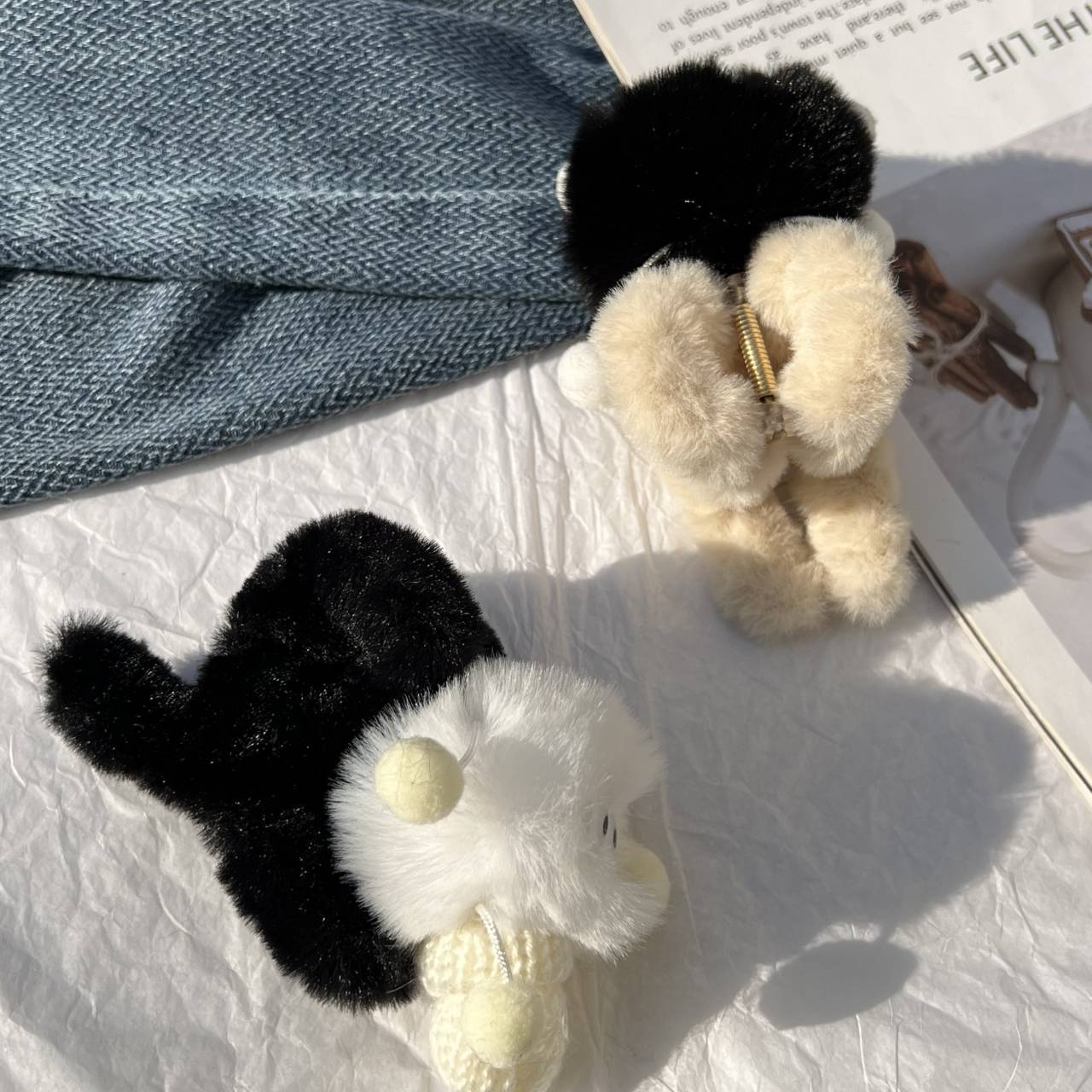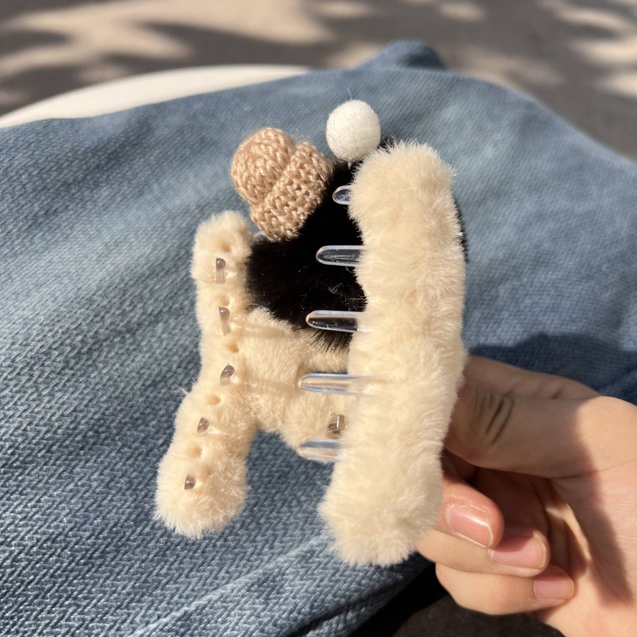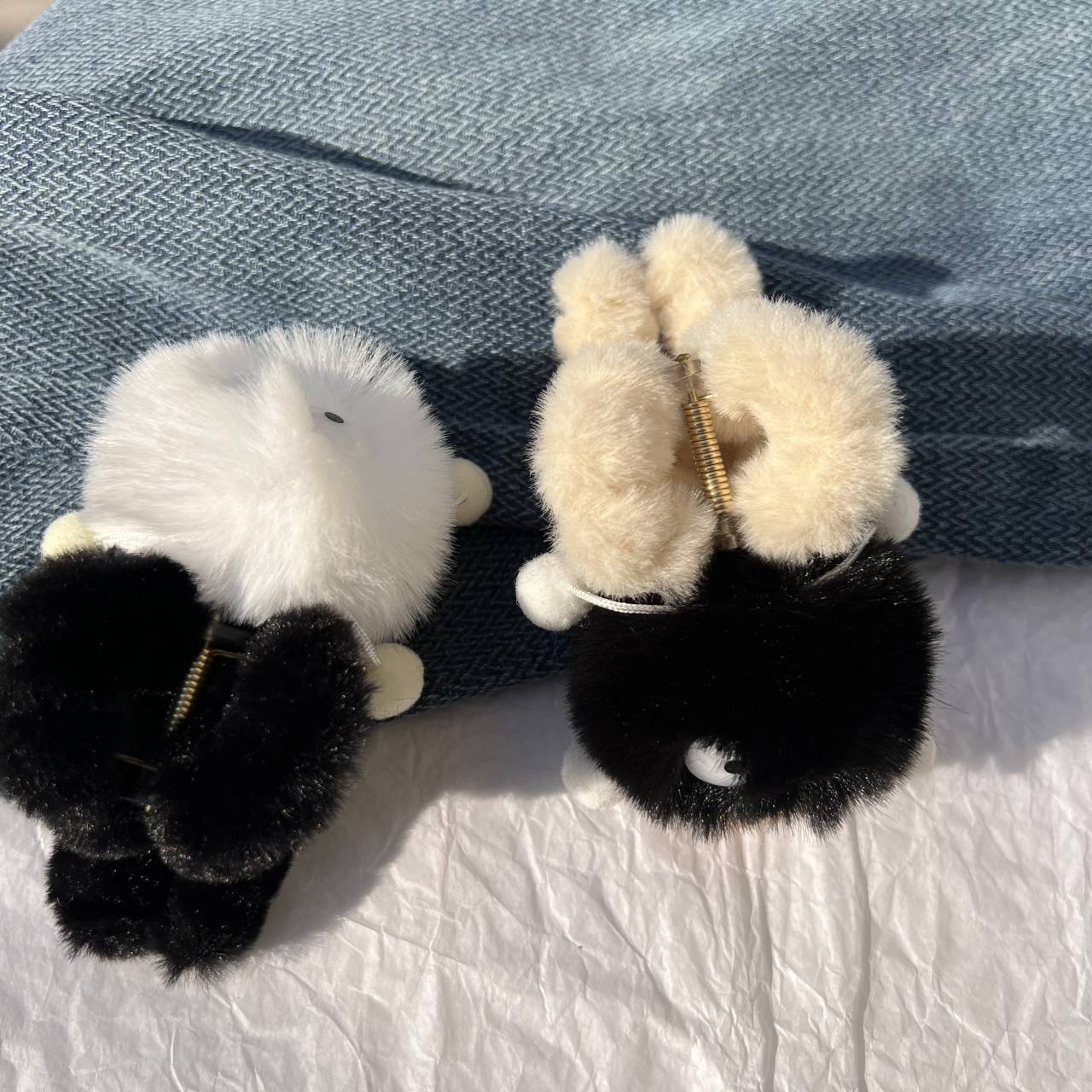 가을과 겨울 흑백 석탄 공 만화 잡아 클립 헤어 볼 봉제 상어 클립 귀여운 슈퍼 귀여운 머리핀 여성용 폭발성 헤어 액세서리