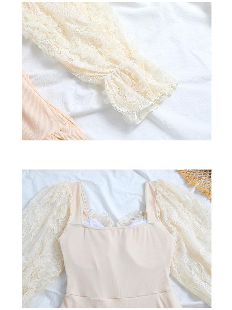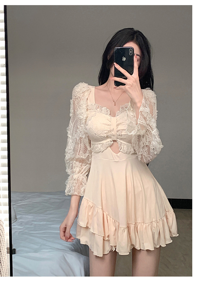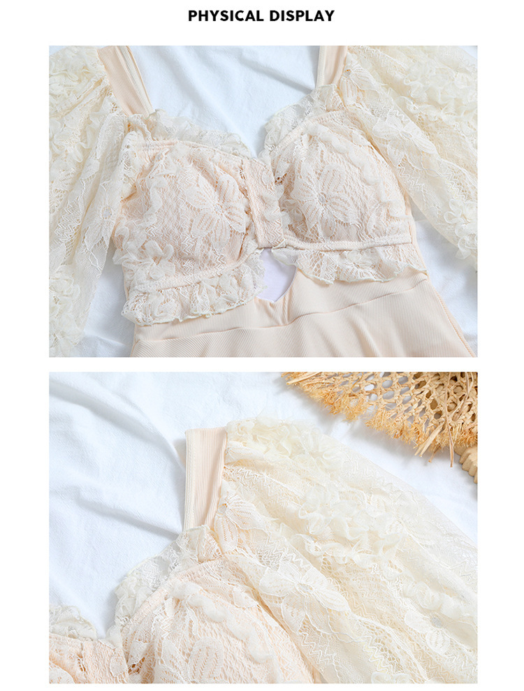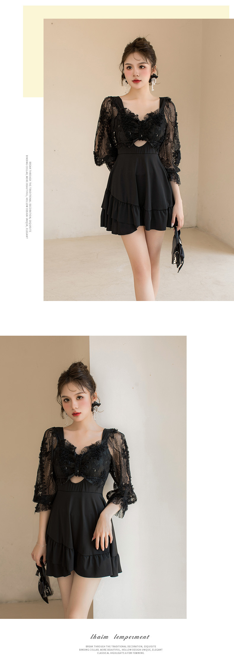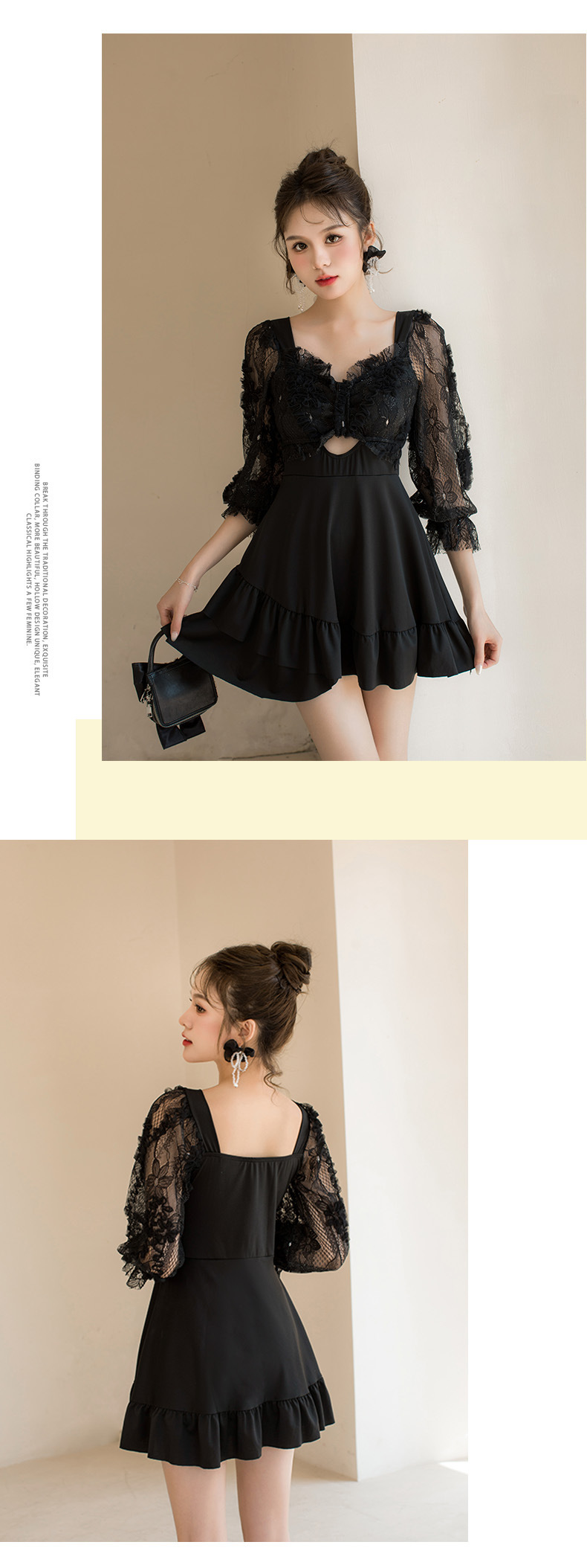 여성용 수영복 새로운 긴팔 in 스타일 원피스 스커트 섹시한 레이스 하이 웨이스트 슬리밍 온천 휴일 수영복