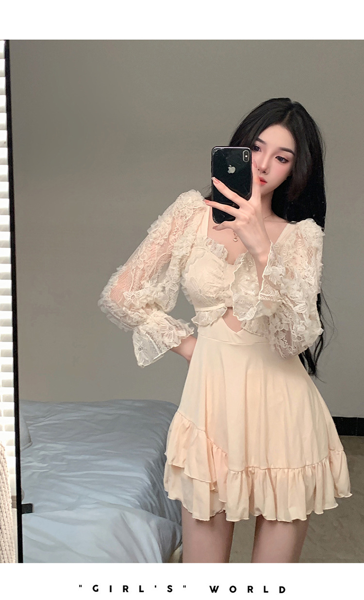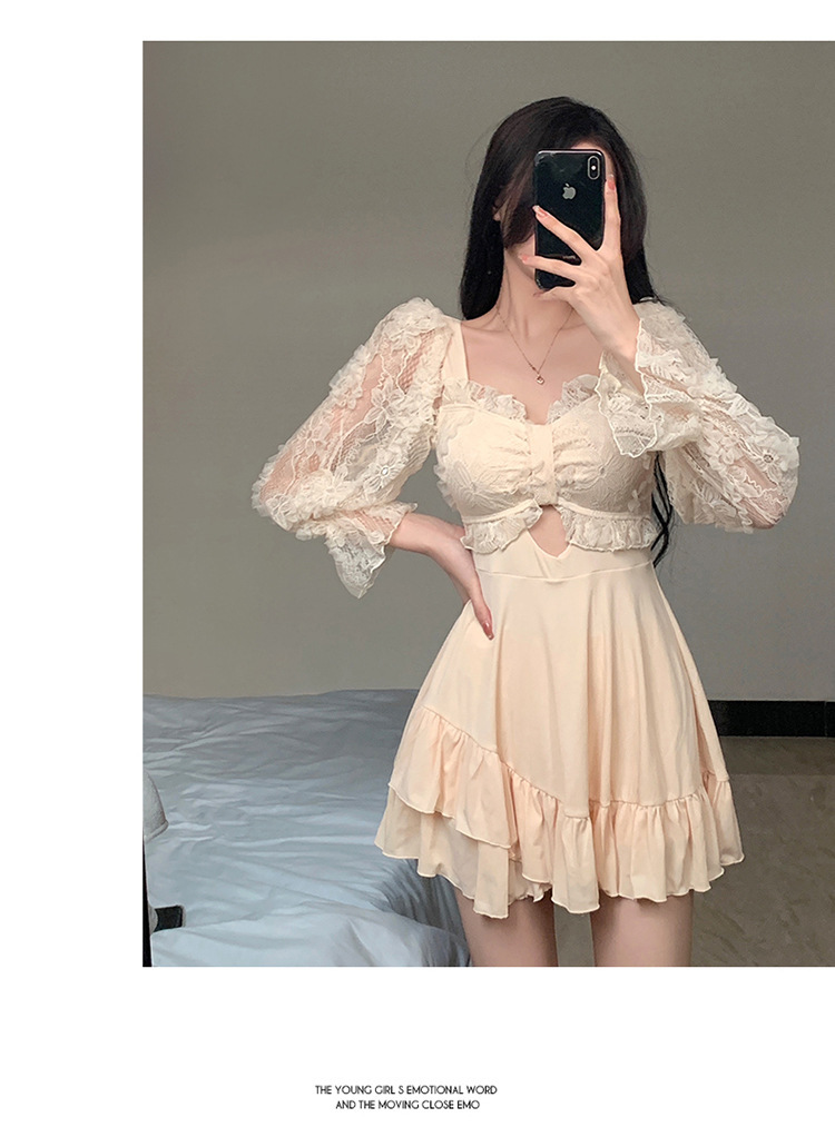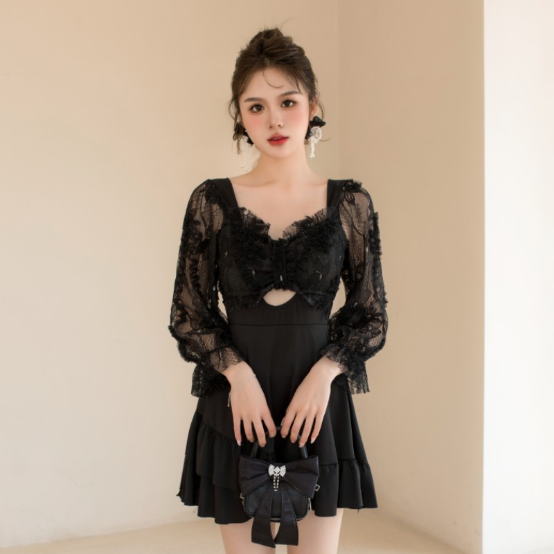 여성용 수영복 새로운 긴팔 in 스타일 원피스 스커트 섹시한 레이스 하이 웨이스트 슬리밍 온천 휴일 수영복스토어 가기