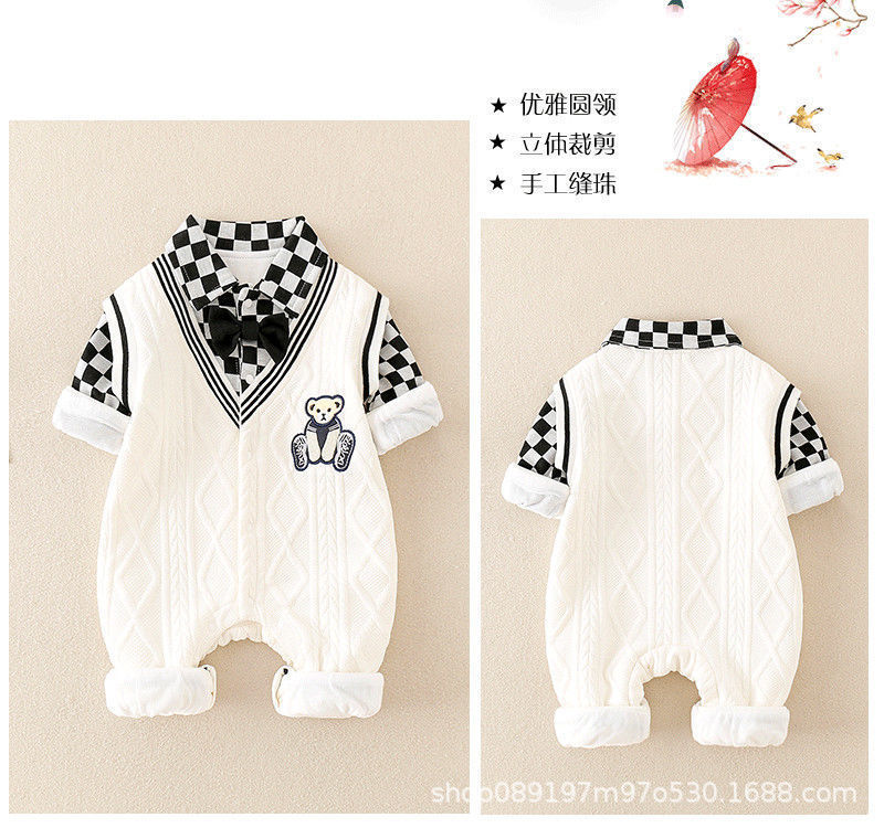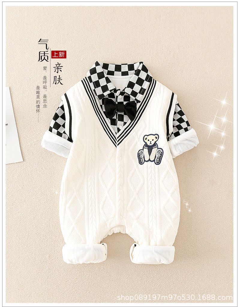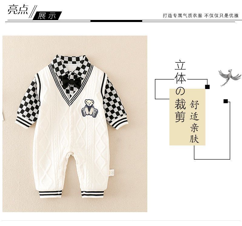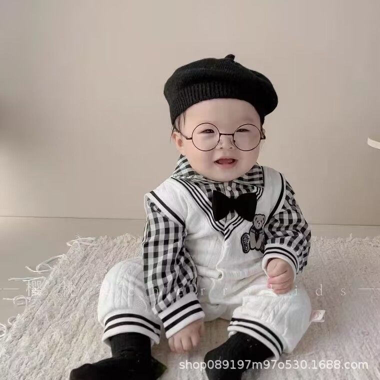 신생아 유아 샴 옷 봄과 가을 등산 옷 귀여운 서양 소년 아기 가짜 투피스 긴팔 옷스토어 가기