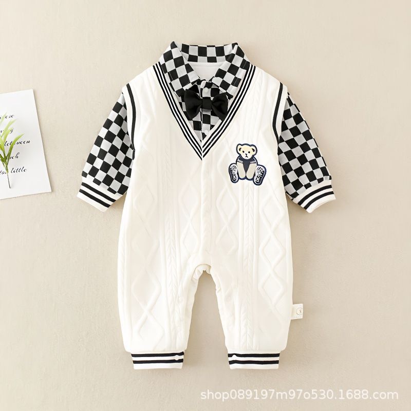 신생아 유아 샴 옷 봄과 가을 등산 옷 귀여운 서양 소년 아기 가짜 투피스 긴팔 옷