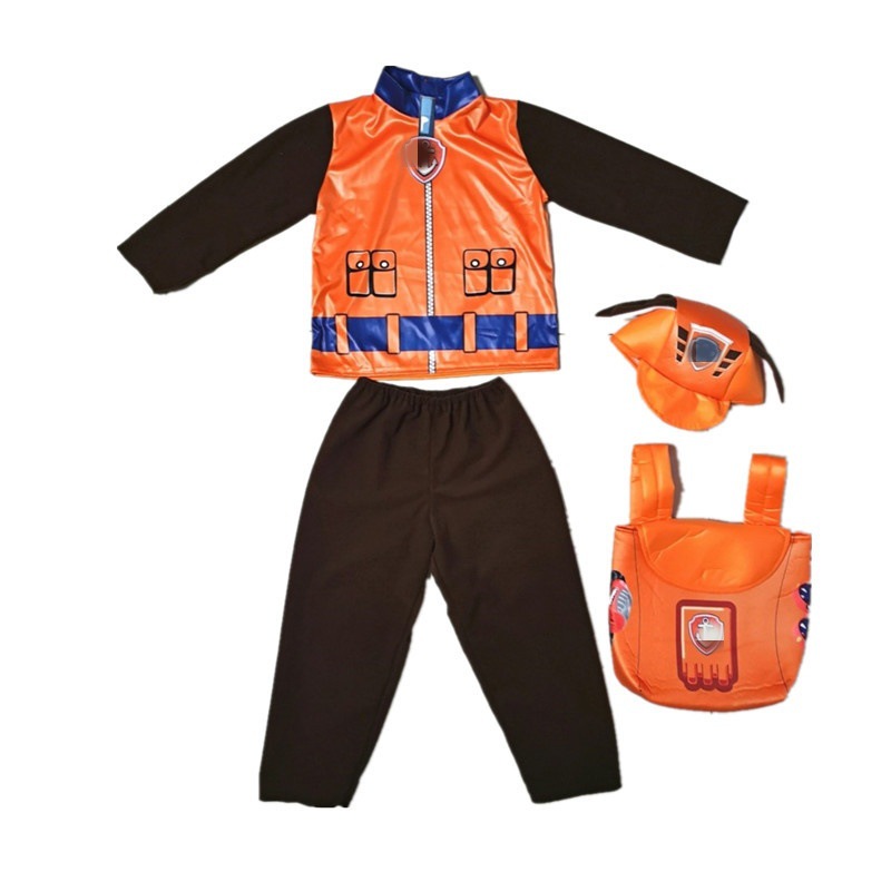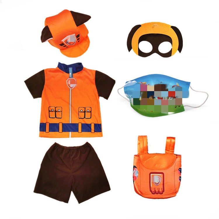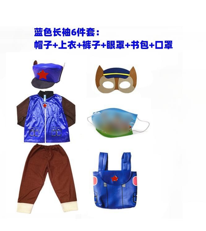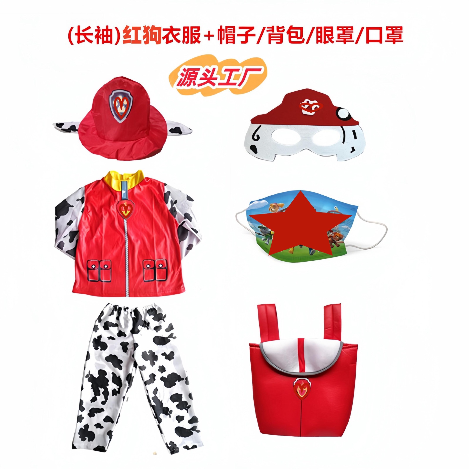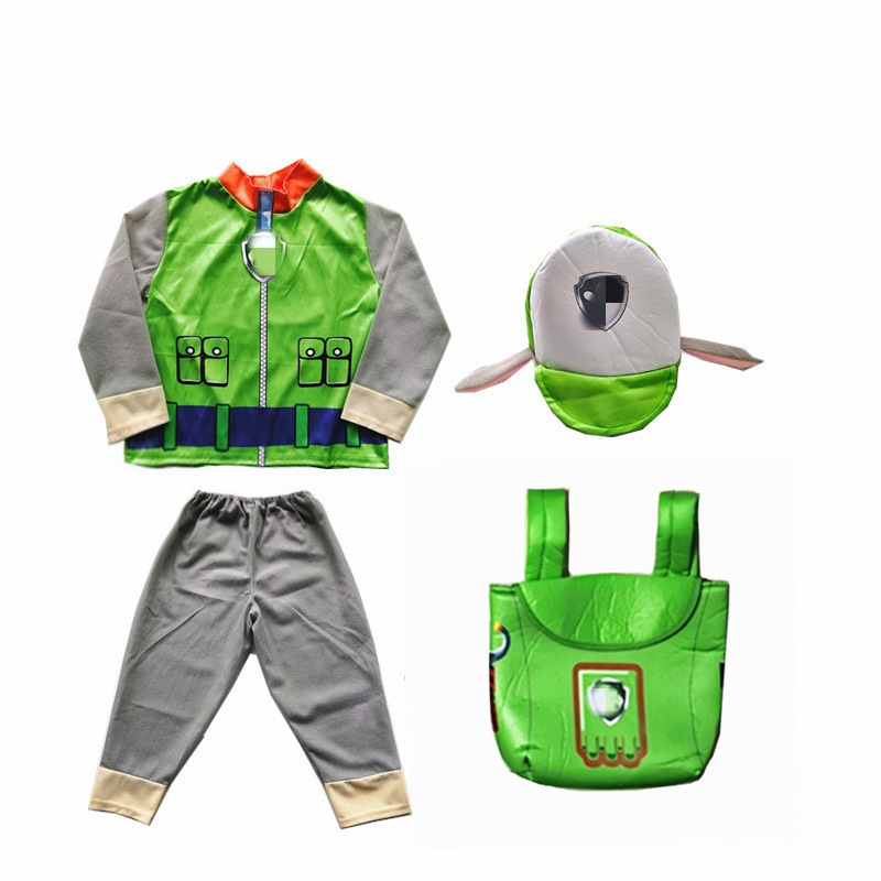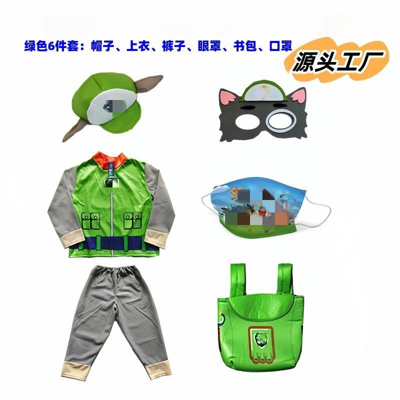 红、蓝、绿、黄、橘色COS服标准长款套装:帽子+上衣+裤子+书包