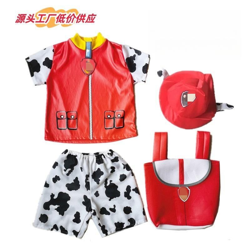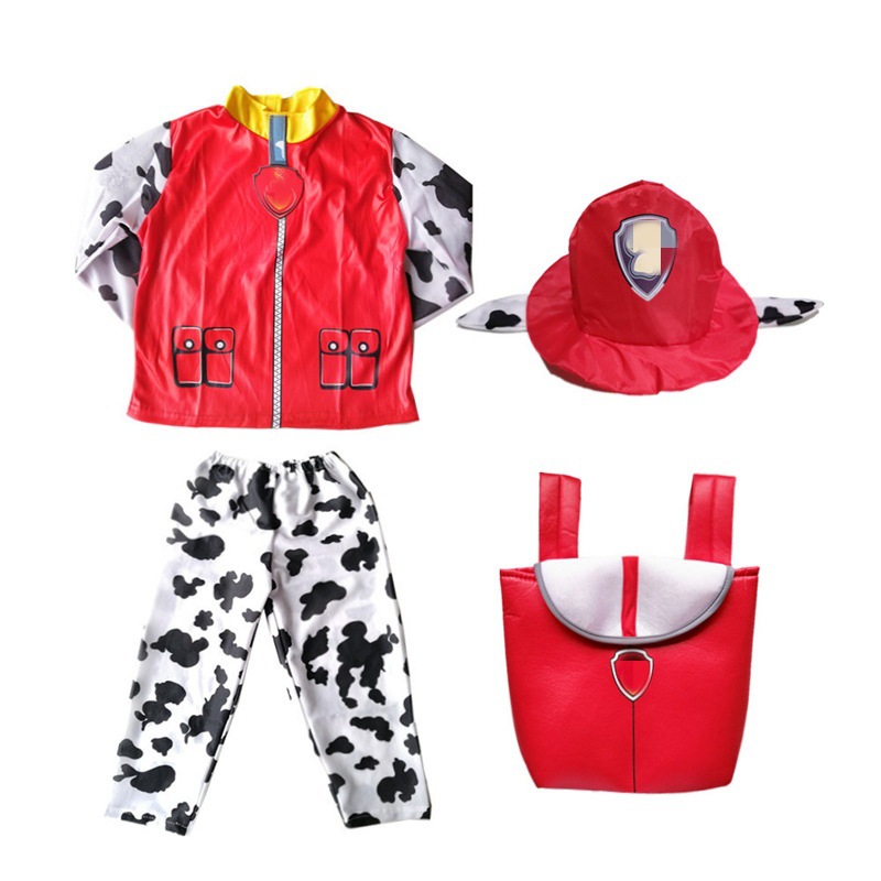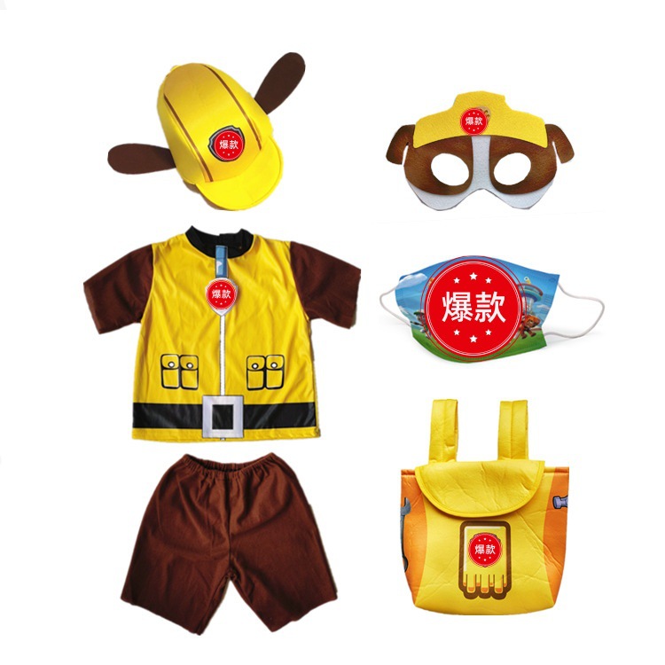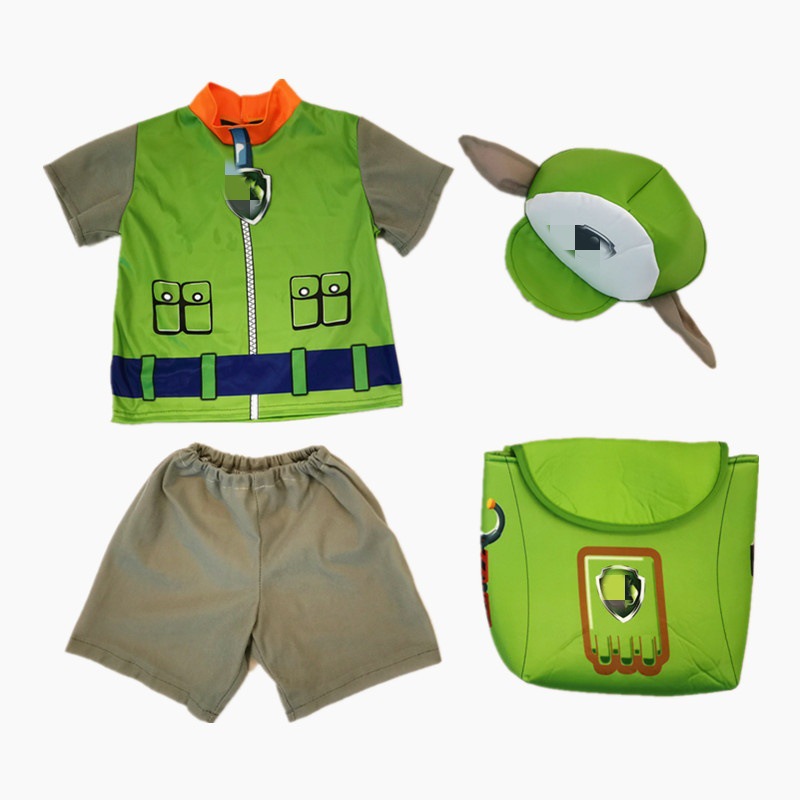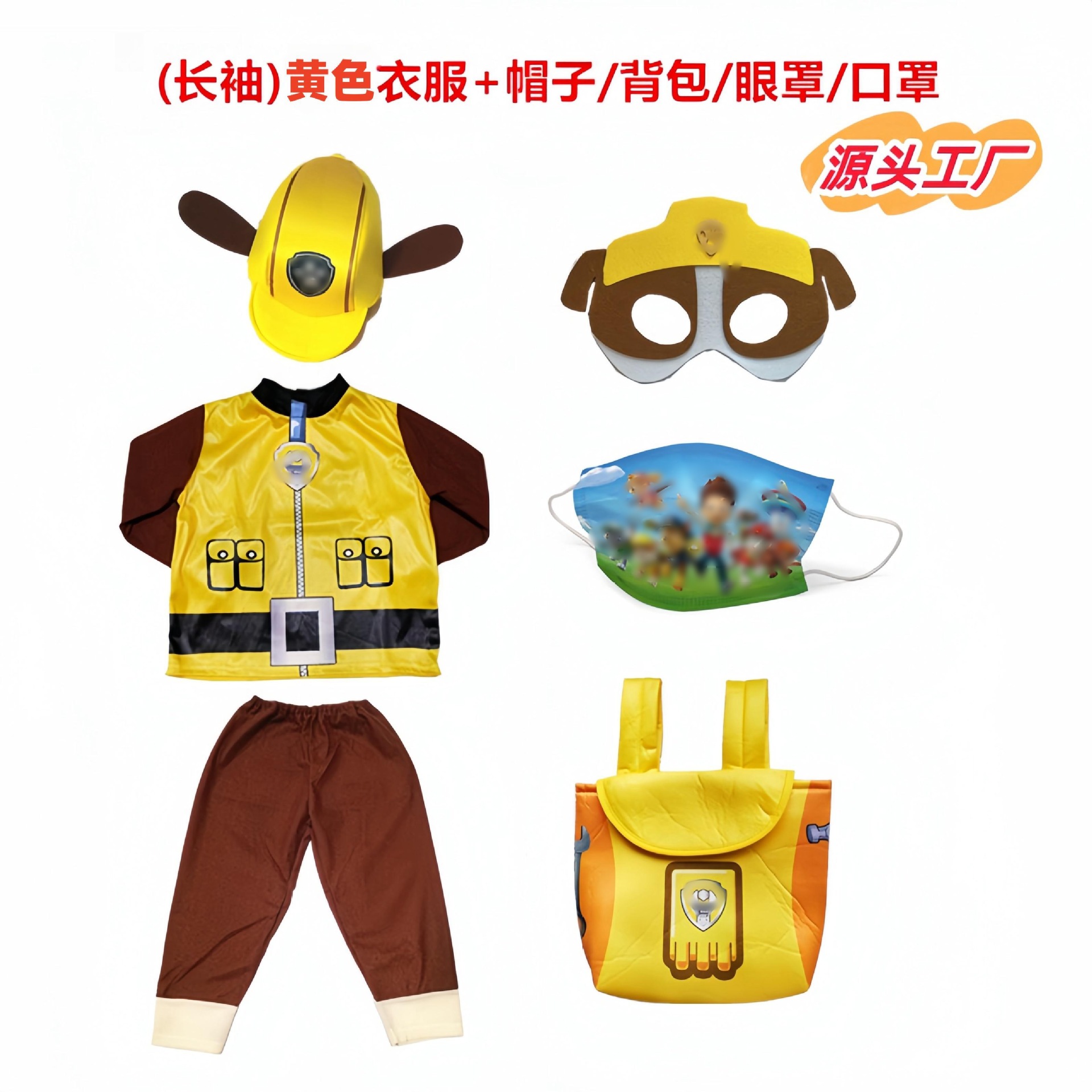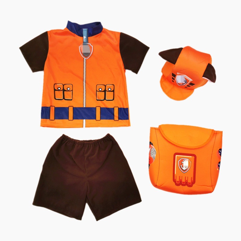 红、蓝、绿、黄、橘色COS服标准长款套装:帽子+上衣+裤子+书包