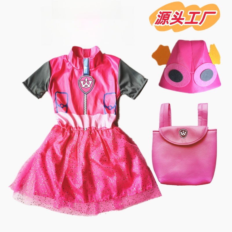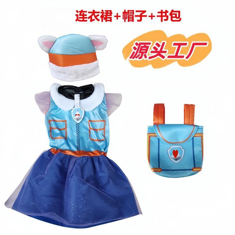 粉色和蓝色裙子:连衣裙+帽子+书包