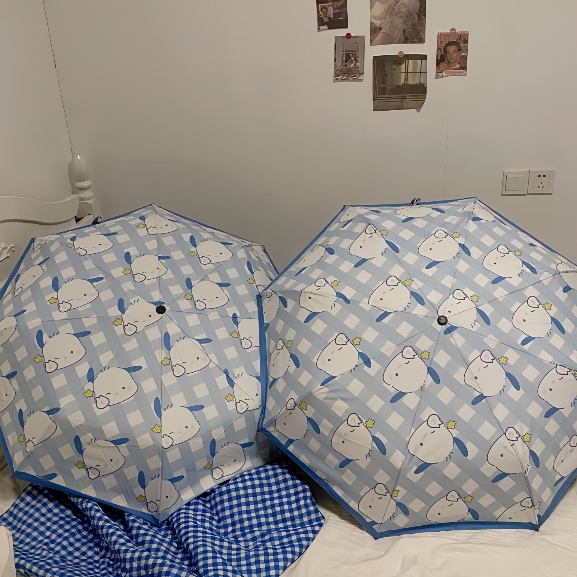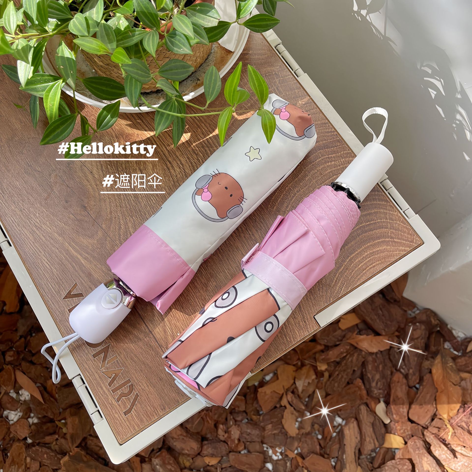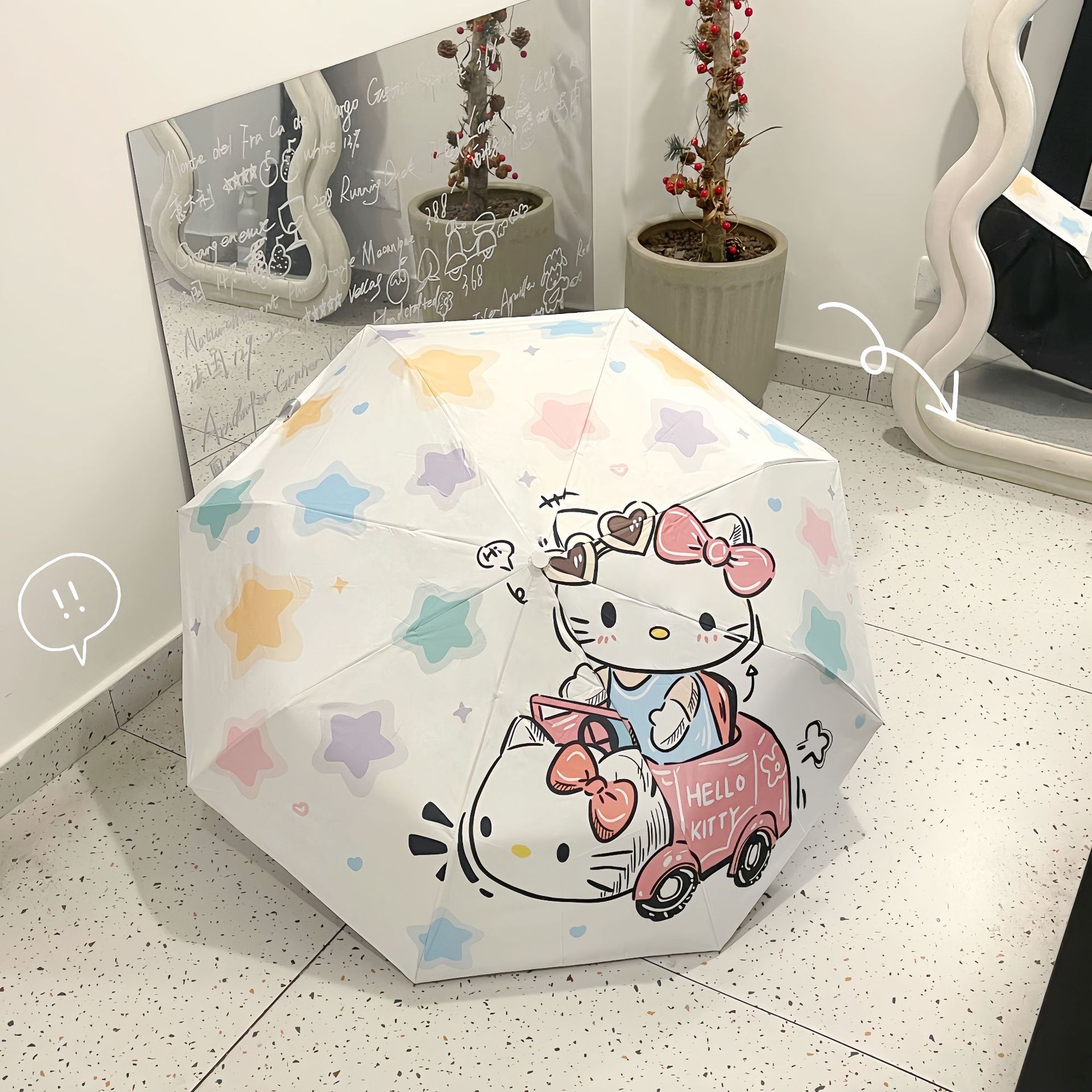 • 검은 별빛 꼬마 K 고양이 자동 햇빛 가리개 우산