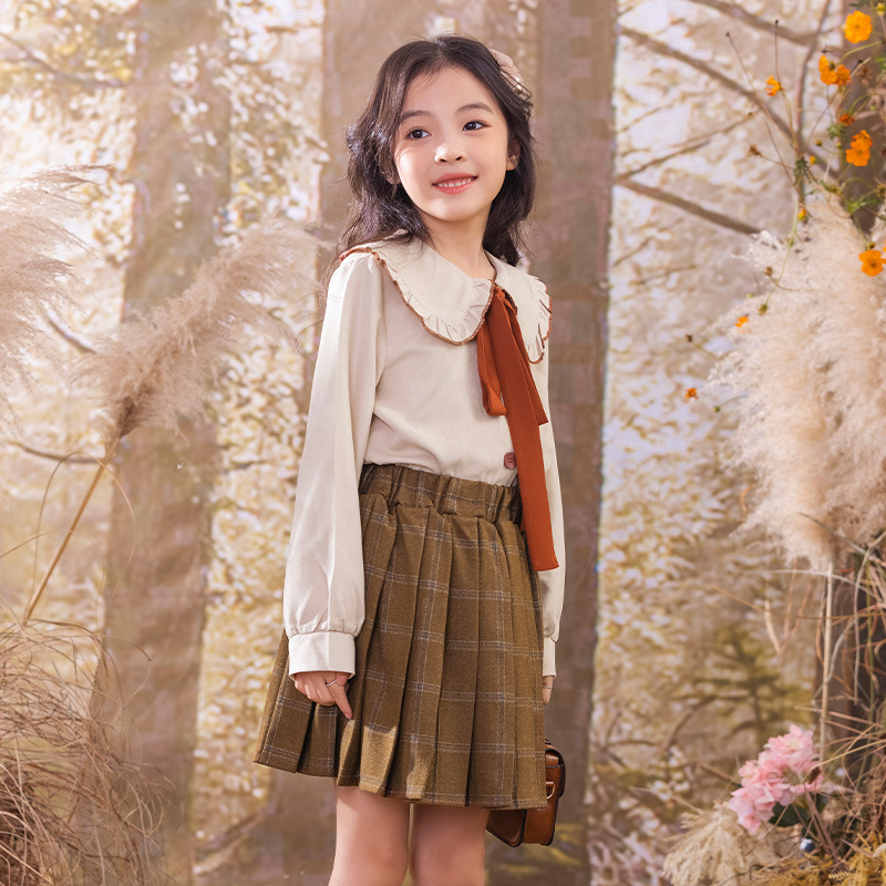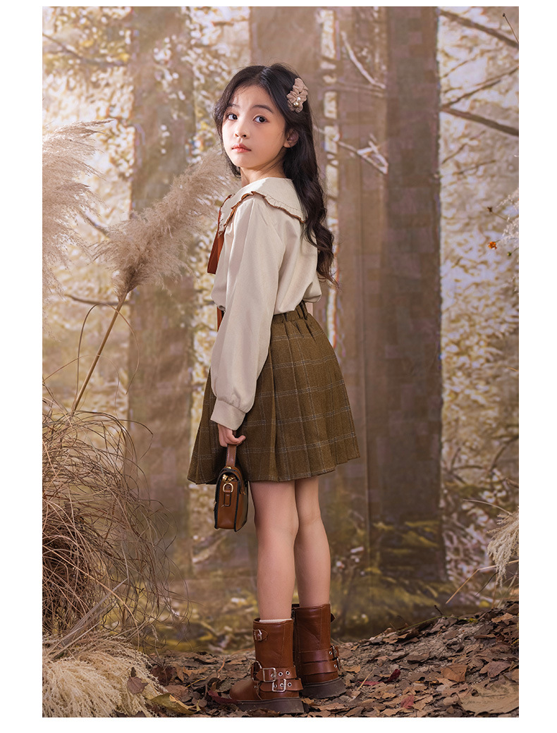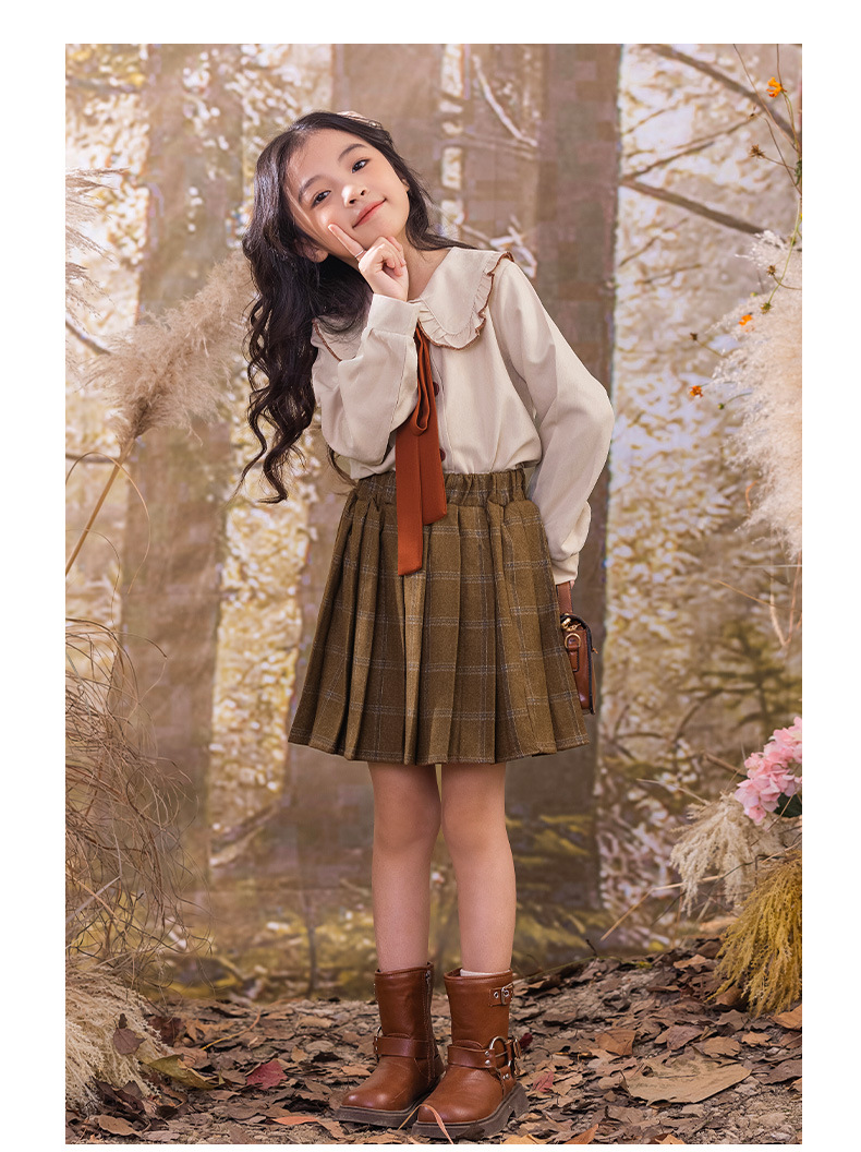 女童衬衫套装裙2024春秋装儿童打底白衬衫JK制服百褶短裙两件套