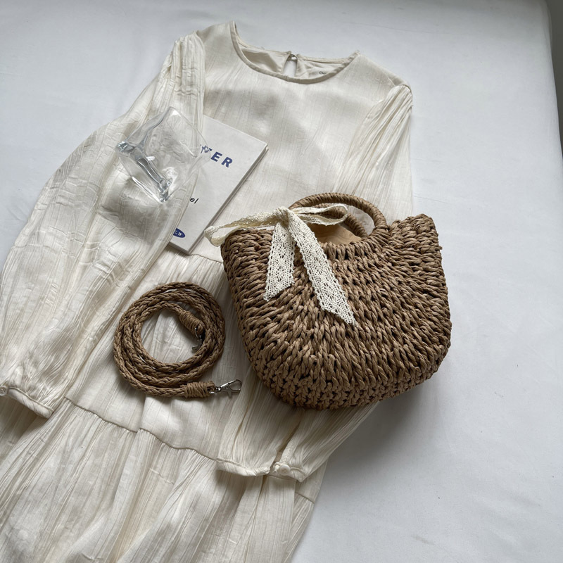 도매 신상 패션 핸드백, 신선한 스타일의 밀짚 공주풍 캐주얼 인기 해변 휴가용 핸드백스토어 가기