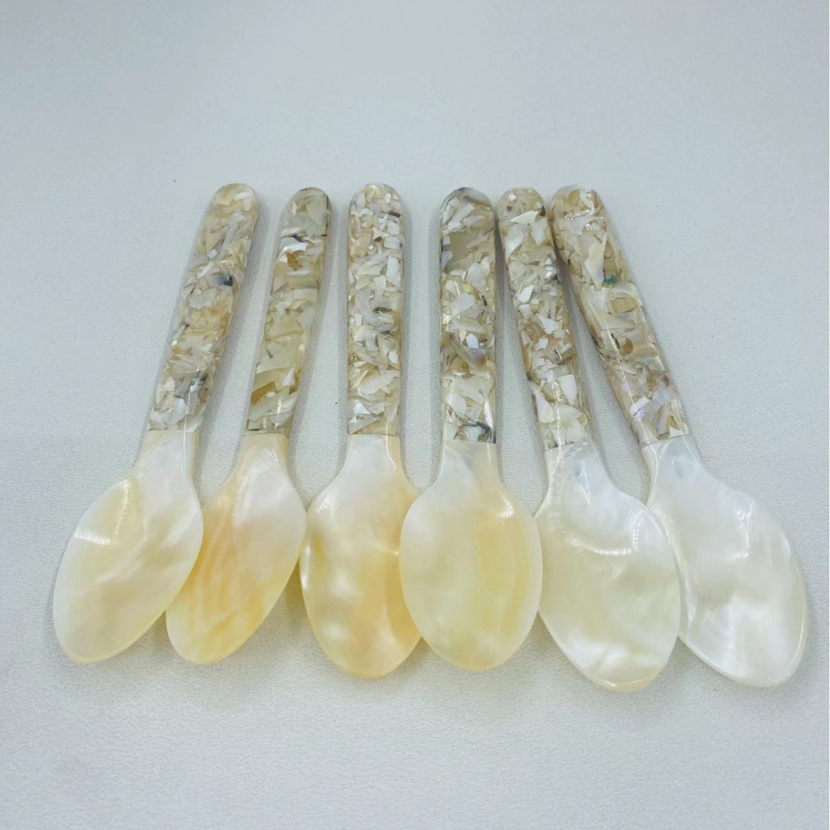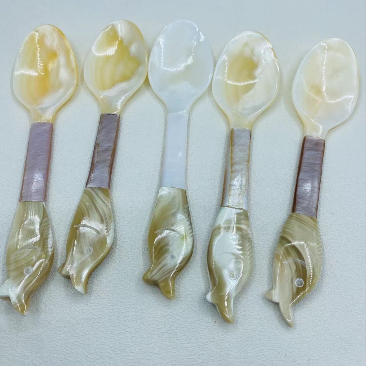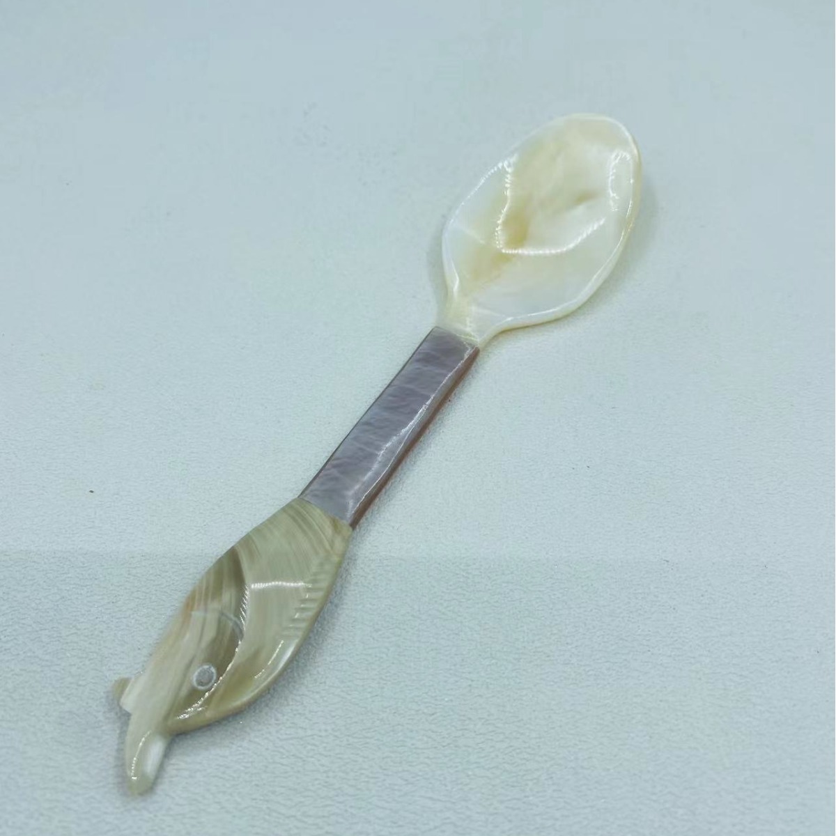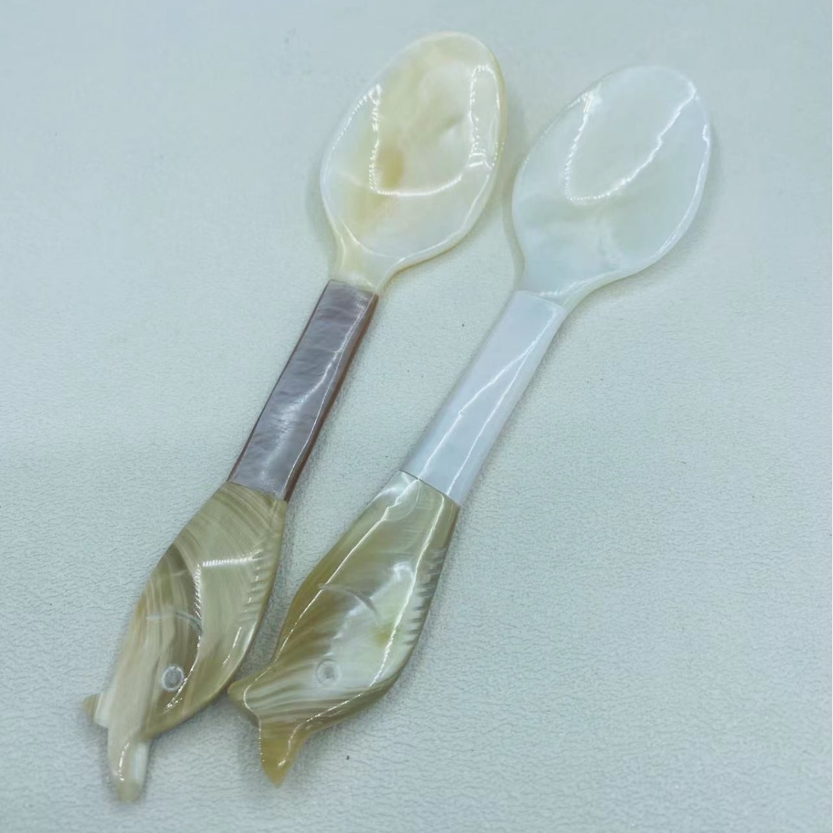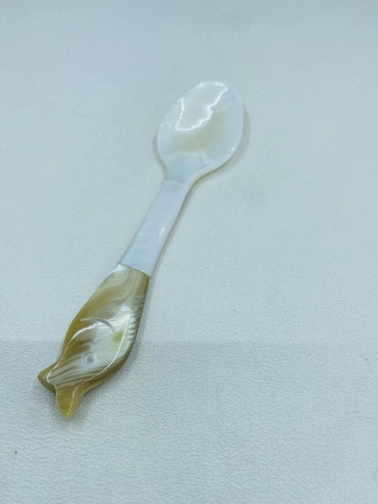 天然贝壳雕刻而成。手柄雕刻成鱼形更美观。精细抛光打磨 表面很光滑