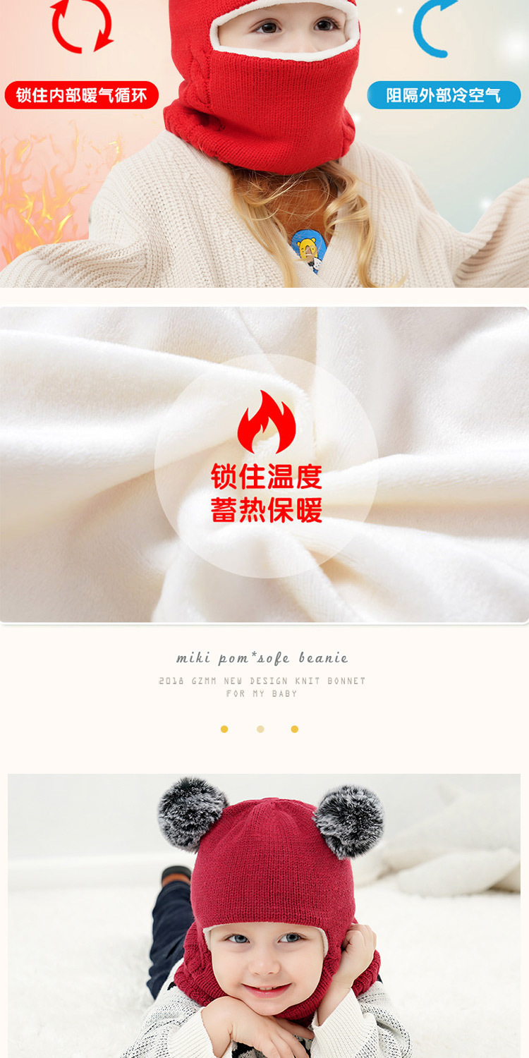 어린이 모자 스카프 풀오버 통합 기모 두꺼운 귀 보호 모자 소년과 소녀를위한 겨울 따뜻한 니트 울 모자