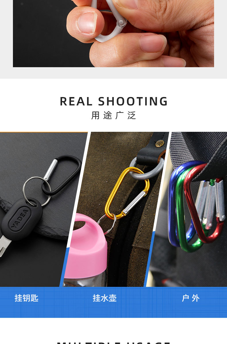 컬러 도장 알루미늄 합금 D형 등산용 클립 안전 스프링 버클 야외 가방 물병 걸이 연결 링